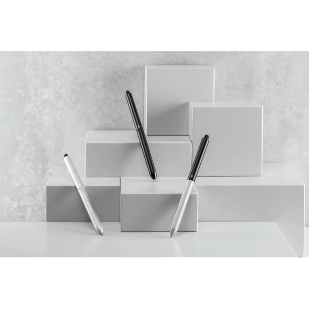 A Neo é uma esferográfica vanguardista e ergonômica em alumínio, com mecanismo twist, que foi concebida a pensar nos profissionais que fazem do caderno e do tablet o seu escritório. A ponteira touch, em silicone, permite reforçar a sua utilidade e o corpo laqueado com acabamento matt/brilhante confere muita elegância. A esferográfica tem recarga em metal e tinta Dokumental® preta. Fornecida em caixa presente. ø11 x 138 mm | Caixa: 55 x 30 x 190 mm