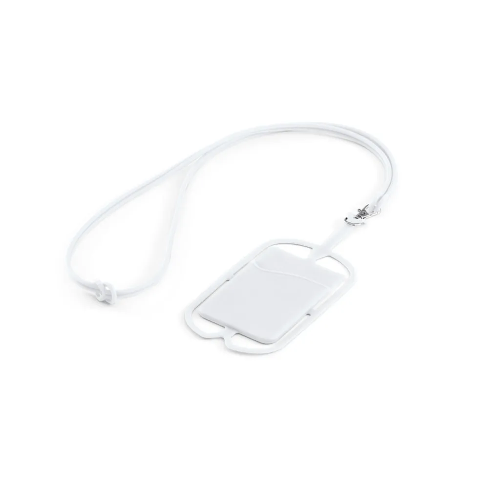 Porta cartões em silicone com cordão e suporte para celular. Porta-cartões: 57 x 86 x 4 mm | Lanyard: 420 mm