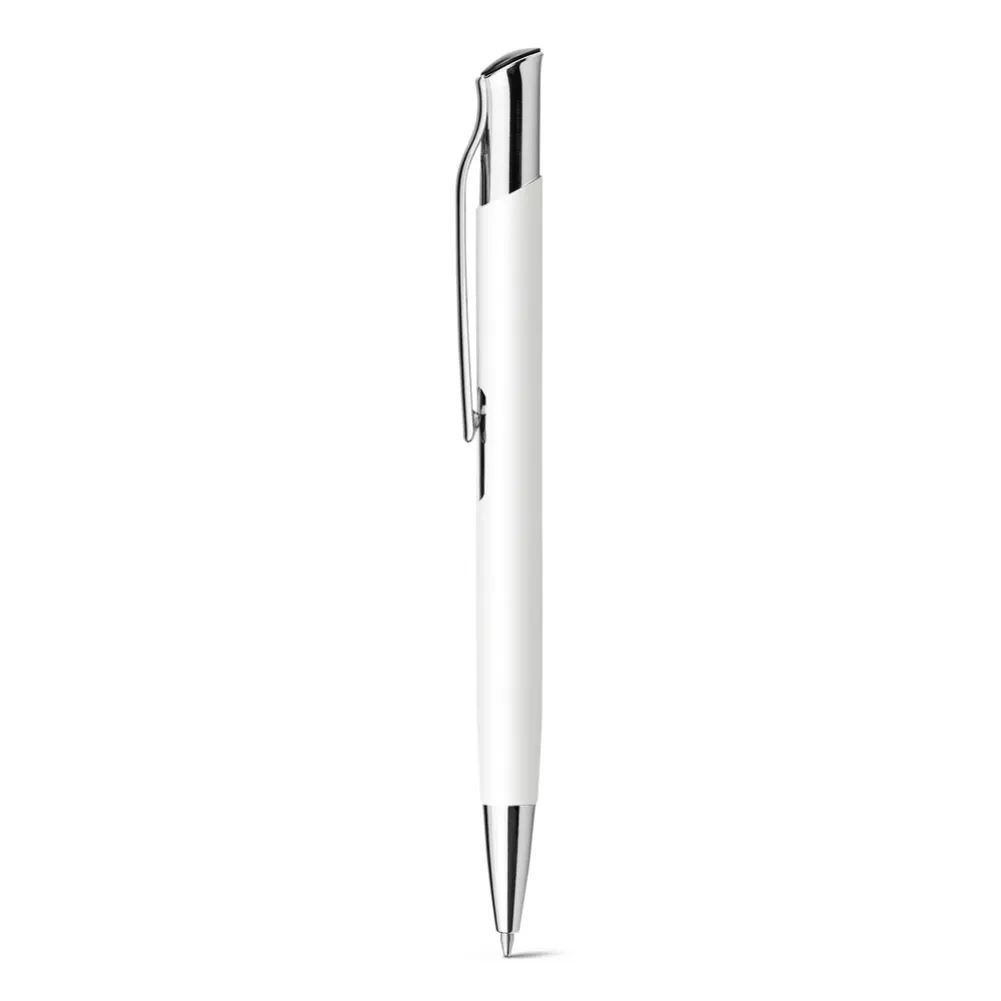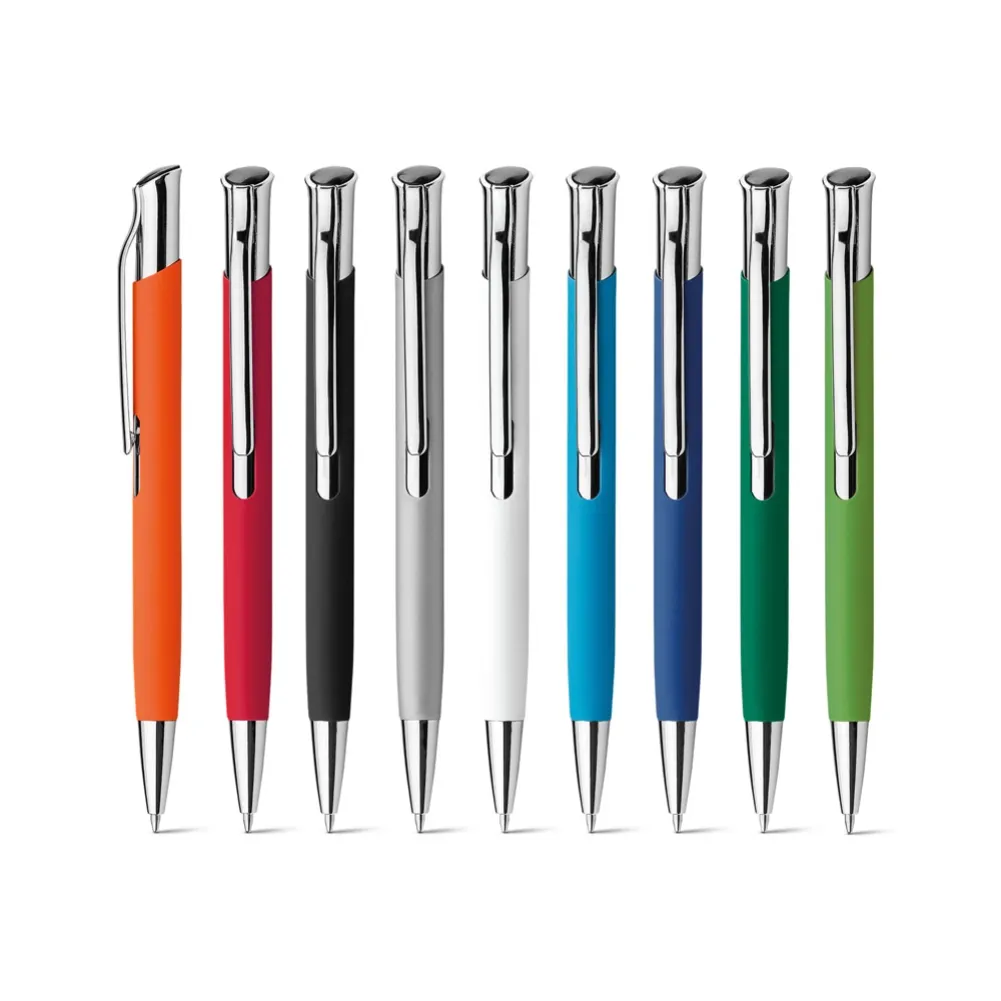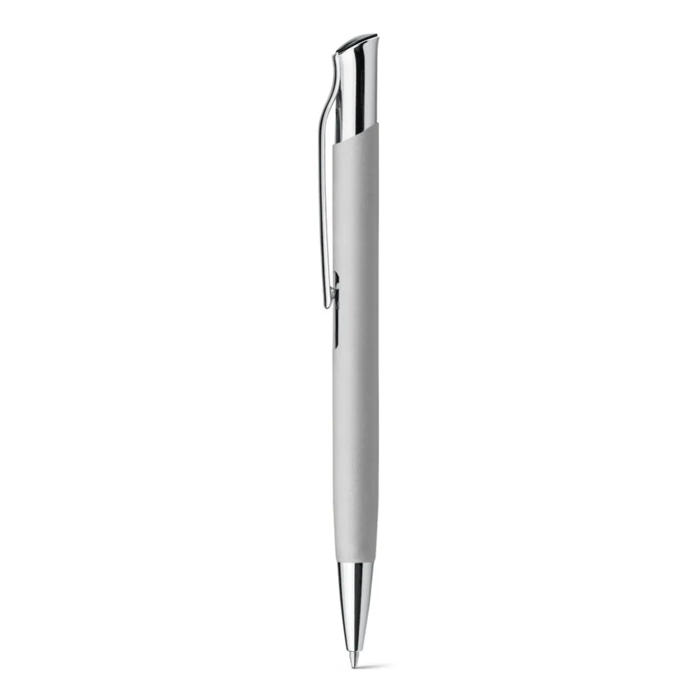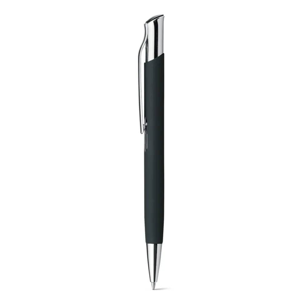 Esferográfica em alumínio com acabamento emborrachado e clipe. ø10 x 137 mm