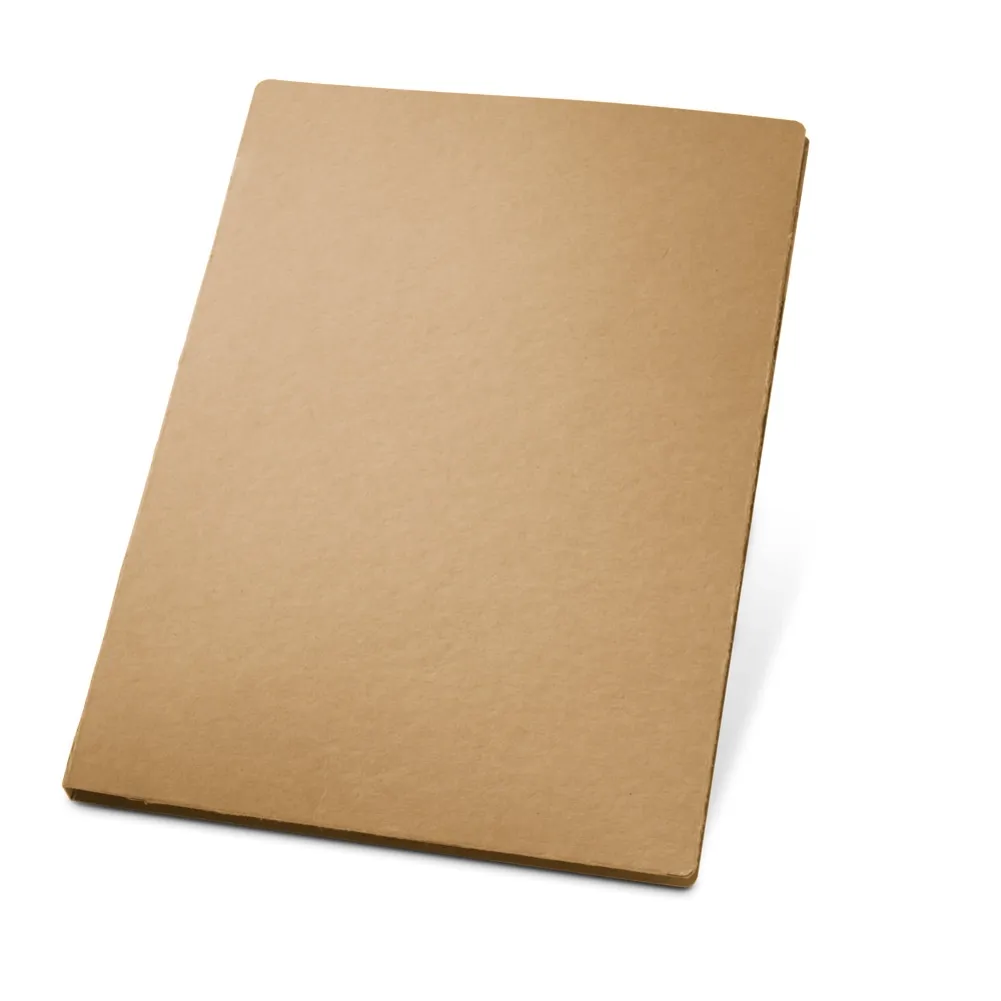 Pasta A4 em cartão (450 g/m²) com um bloco de 20 folhas lisas de papel reciclado e suporte para cartão de visita. Incluso esferográfica. 230 x 320 x 15 mm