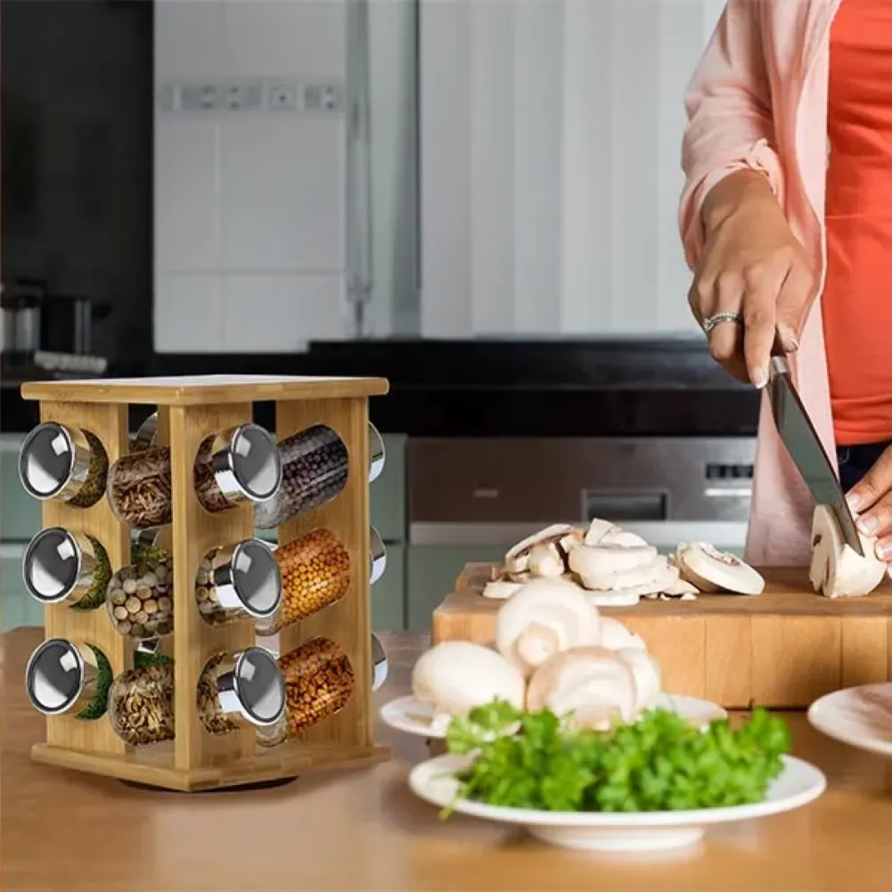 PORTA CONDIMENTOS EM BAMBU - 13 PÇS