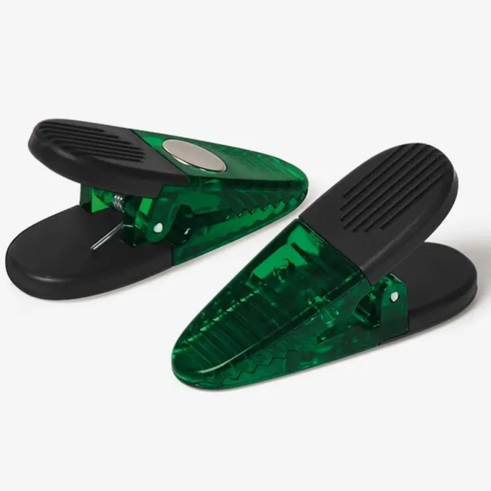 Confeccionado em poliestireno verde, possui dentes ziguezague, mola em metal, detalhe superior antiderrapante em plástico preto e um imã atrás para pendurá-lo em superfícies metálicas. Tipo de gravação: Uma gravação em Silk-Screen. Dimensões do produto: 8,5x3cm Dimensões da embalagem: 85x40x30 mm (AxLxP) Peso da embalagem: 40 g Embalagem do produto: Saco Plástico Prata