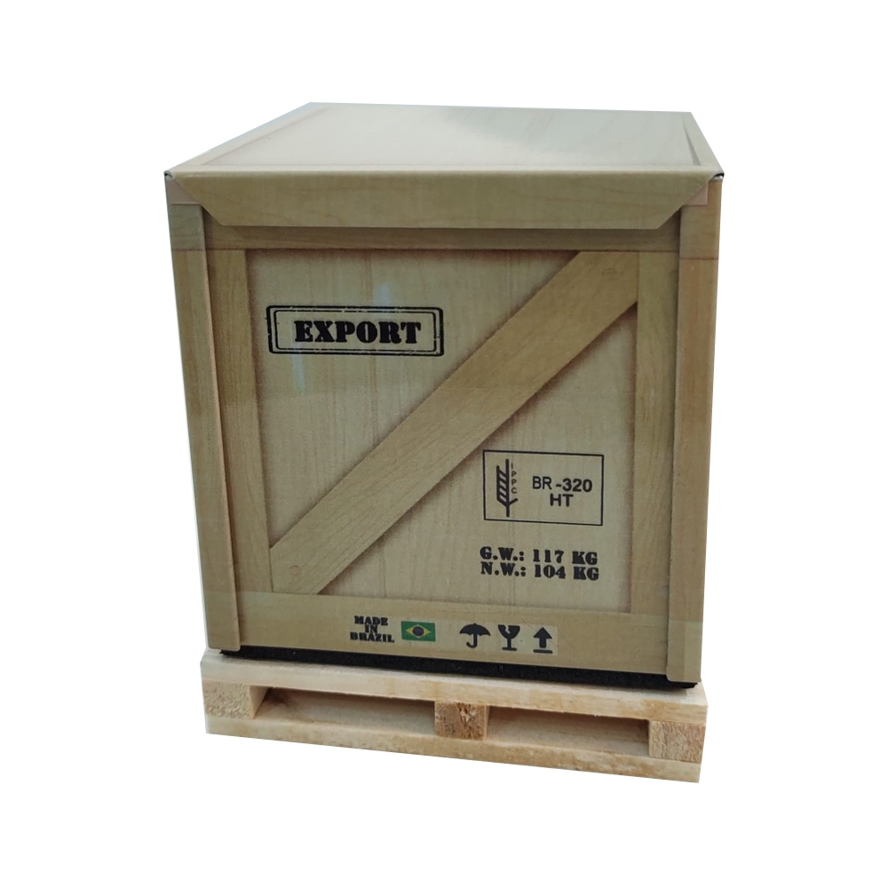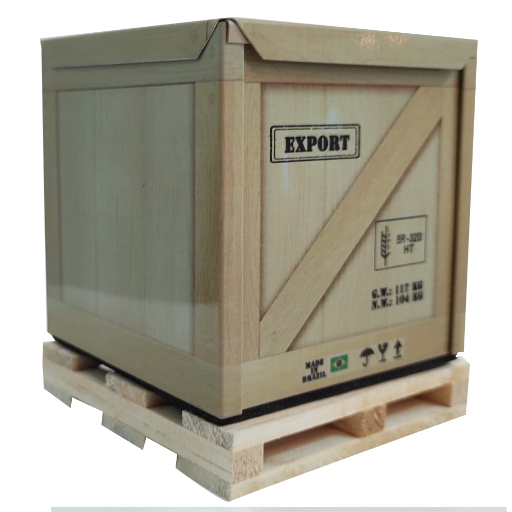 Porta Canetas de Metal em formato de Caixote de exportação e importação