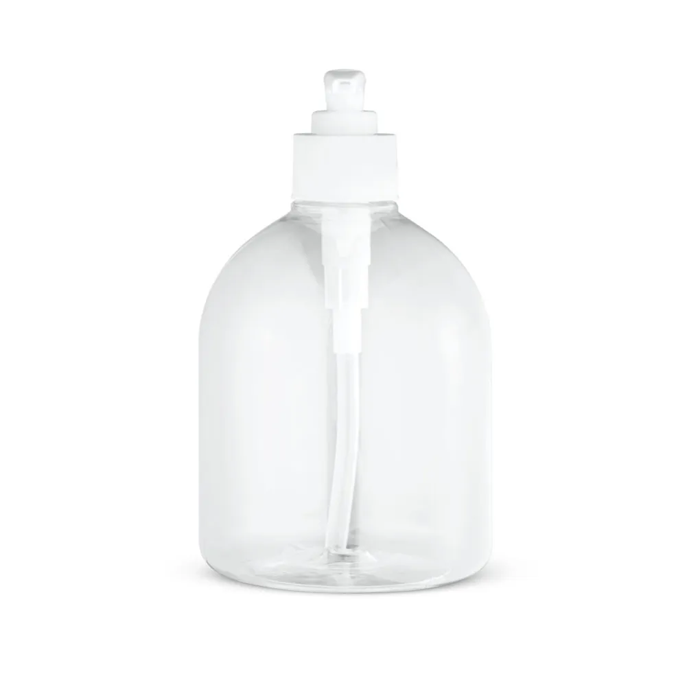 Frasco com doseador em PET e PP, com capacidade até 500 mL. Frasco recarregável e reutilizável. ø85 x 150 mm