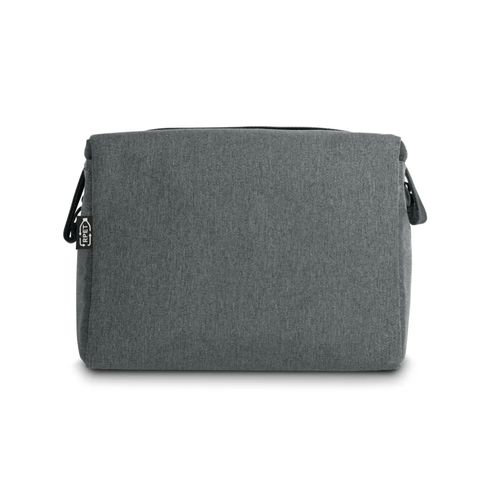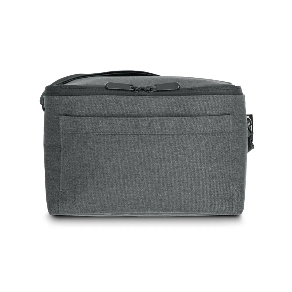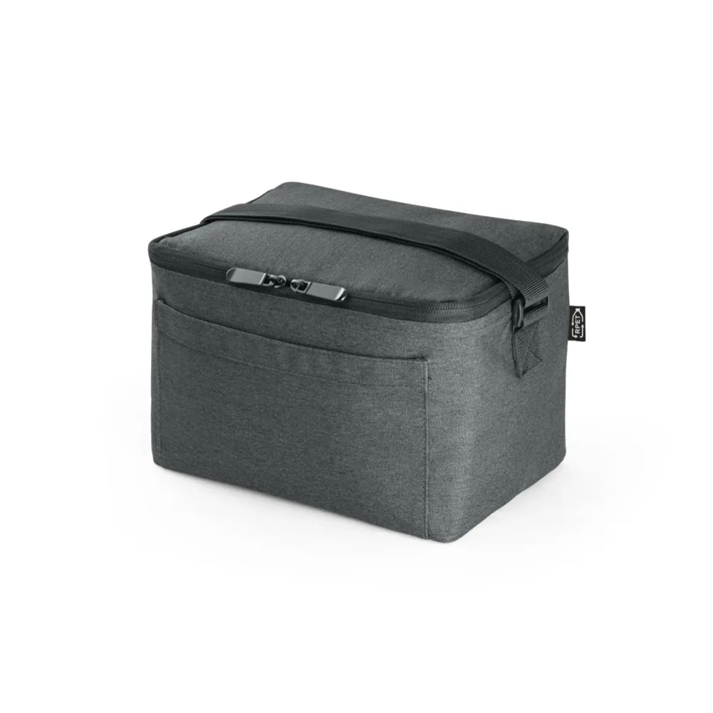 Bolsa térmica em rPET 600D com interior em PEVA. Alça ajustável em webbing, bolso frontal e fecho duplo. Capacidade até 7 L. 240 x 170 x 170 mm