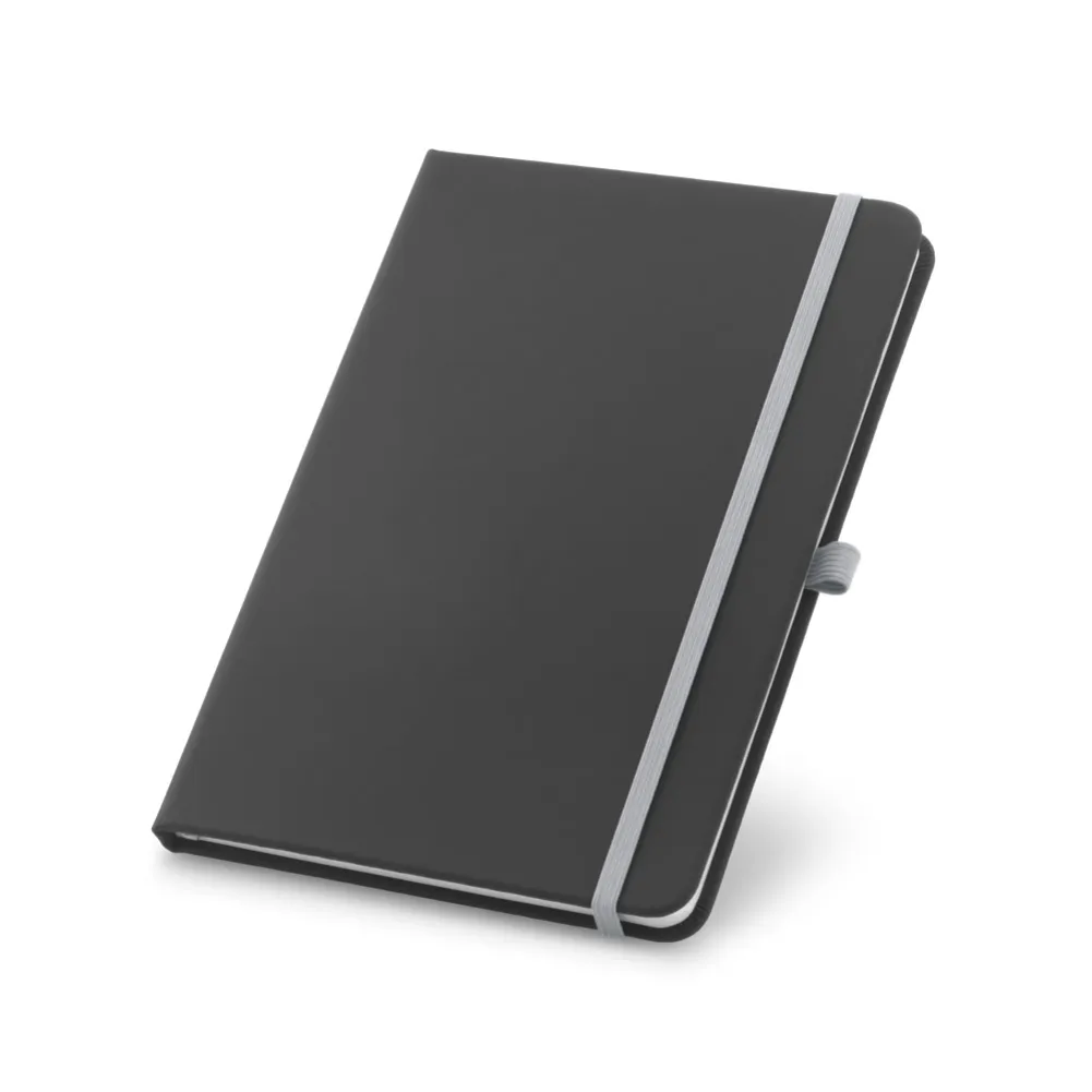 Caderno A6 com capa dura em c. sintético e 80 folhas pautadas. 90 x 140 mm