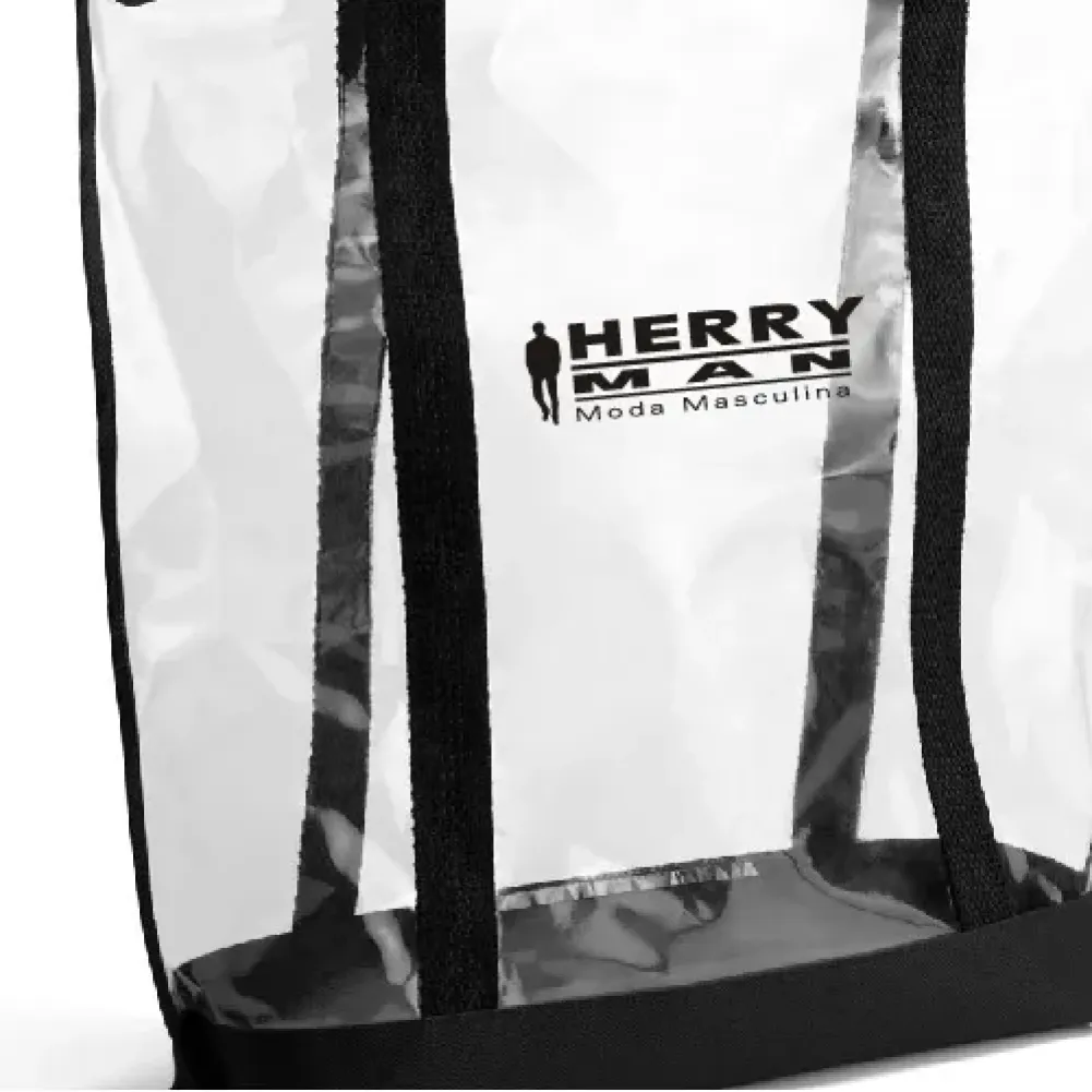 Sacola transparente confeccionada em PVC / Nylon 600 com detalhes em preto, possui acabamento reforçado em costura lateral. Conta com estrutura dobrável e duas alças de mão com detalhe que se estende até a base do produto. Tipo de gravação: Uma gravação em Silkscreen. Dimensões do produto: 40x30cm Dimensões da embalagem: 400x300x0 mm (AxLxP) Peso da embalagem: 88 g Embalagem do produto: Plástica