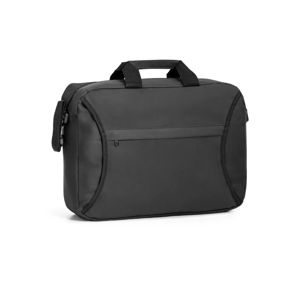Pasta multifunções em 600D. Compartimento exterior aberto (forrado) com bolso frontal com zíper. A pasta tem alça de ombro ajustável e alças de mão com reforço. 400 x 300 x 100 mm