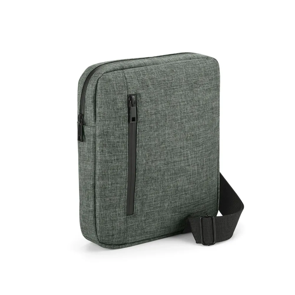 Pasta à tiracolo em 600D de alta densidade. Compartimento principal forrado, divisória almofadada para tablet 97 e com diversos bolsos interiores. A pasta tem ainda bolso frontal e bolso posterior, alça de ombro ajustável e parte posterior almofadada. 220 x 270 x 45 mm