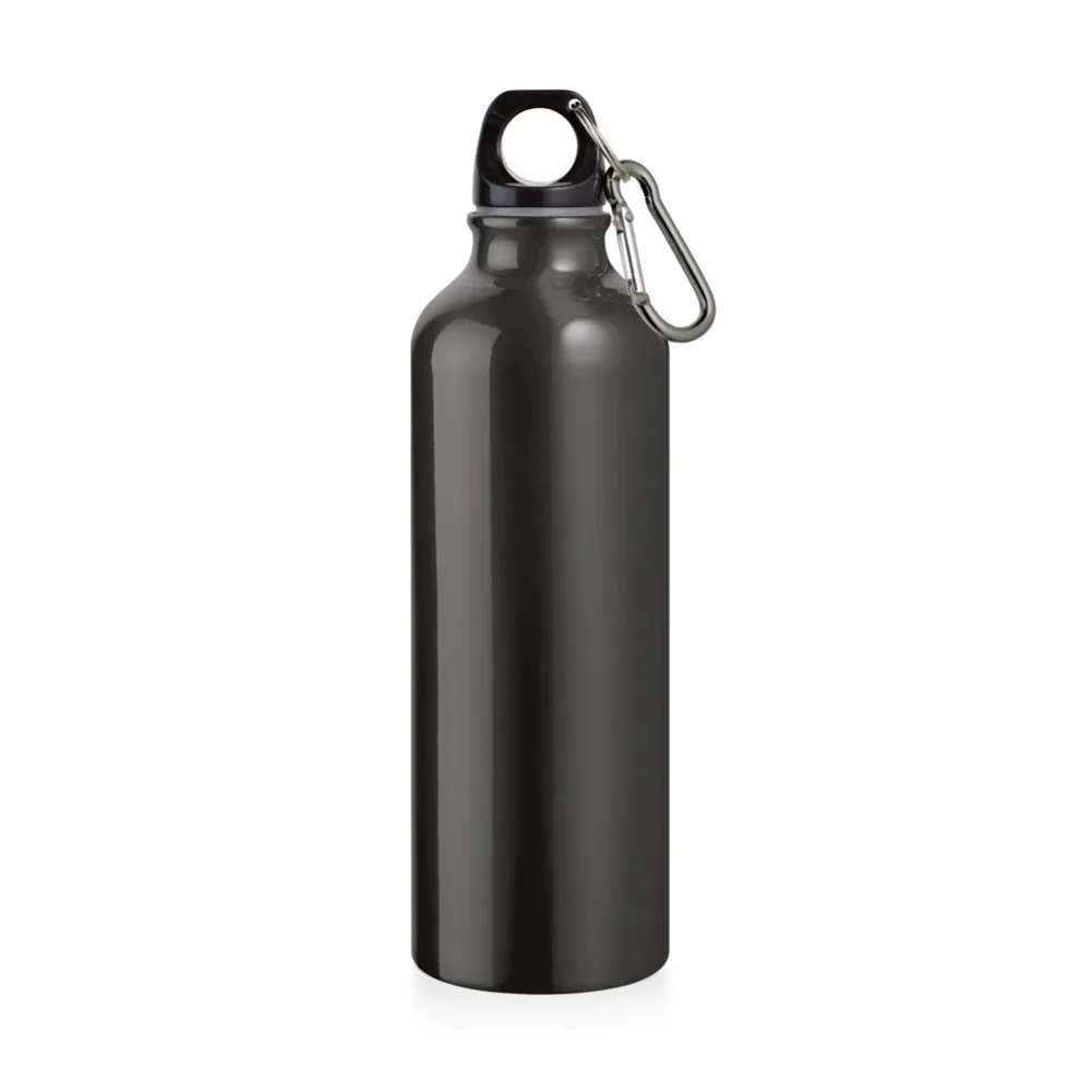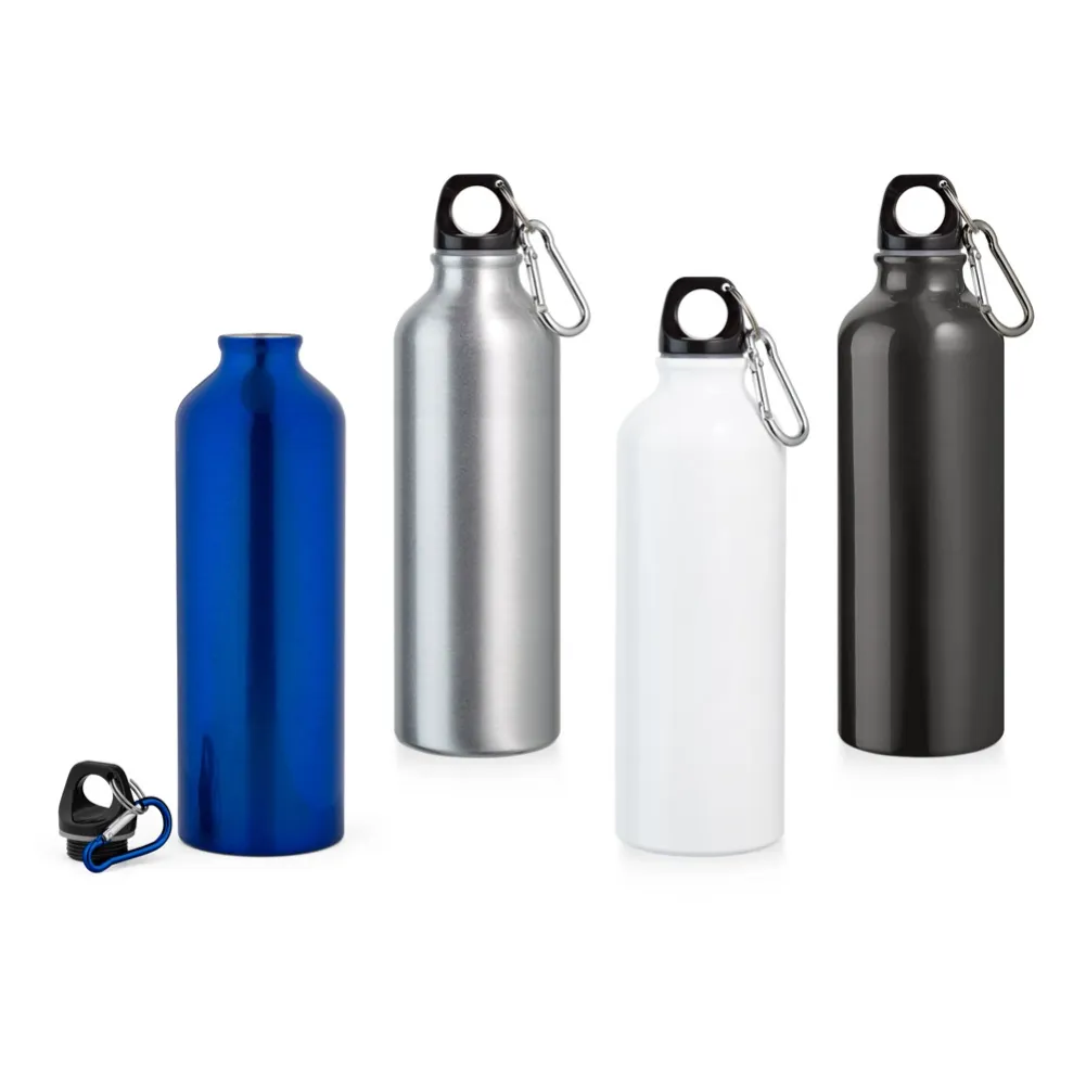 Squeeze em alumínio com mosquetão e capacidade até 750 mL. Certificação EU Food Grade. Caixa branca 94657 vendida opcionalmente. ø73 x 247 mm