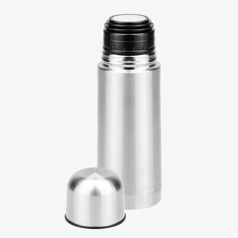 Confeccionado em aço inox escovado com tampa em polipropileno rosqueável, botão fast click para abrir (open) e fechar (close) localizada na parte superior e anel em silicone para vedação. Mantém por mais tempo a temperatura de bebidas quentes ou geladas. Tipo de gravação: Uma gravação a Laser. Dimensões do produto: 20x6,5Øcm Dimensões da embalagem: 230x75x75 mm (AxLxP) Peso da embalagem: 300 g Embalagem do produto: Caixa Preta