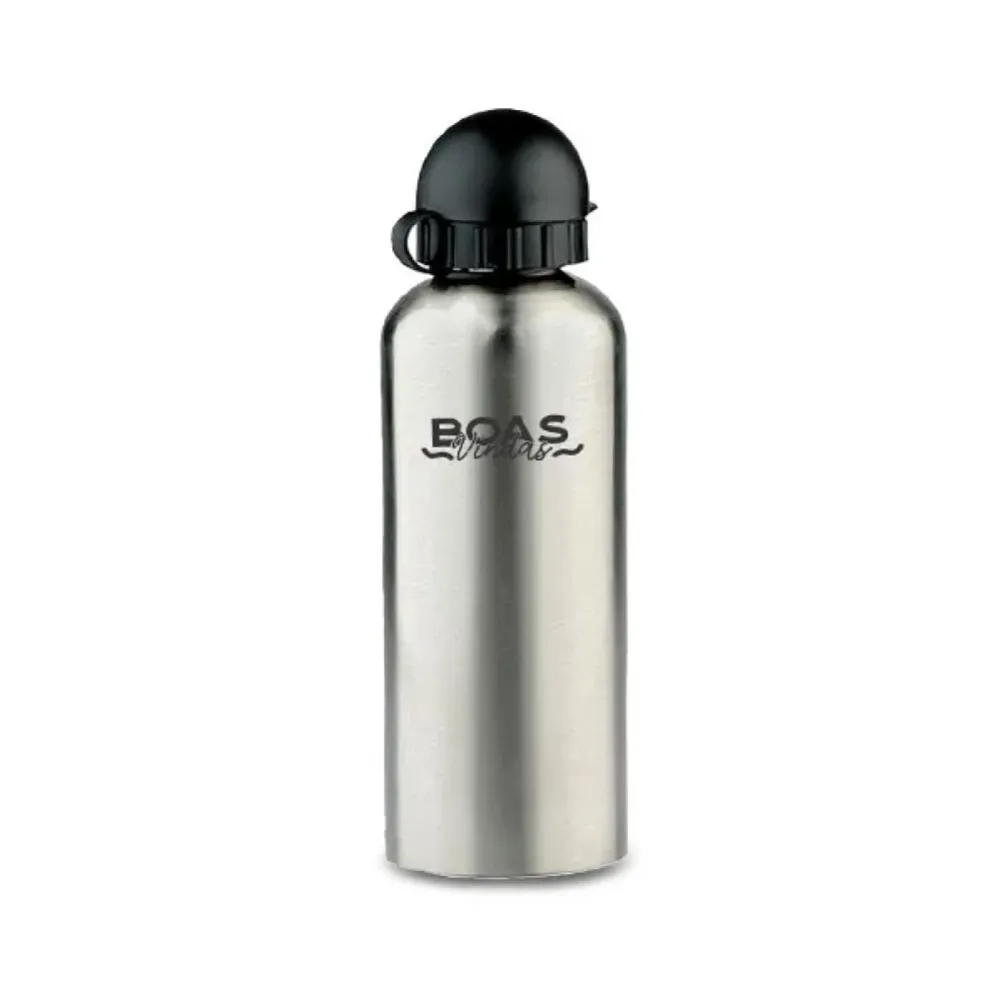 SQUEEZE EM AÇO INOX COM TAMPA PRETA - 600 ML