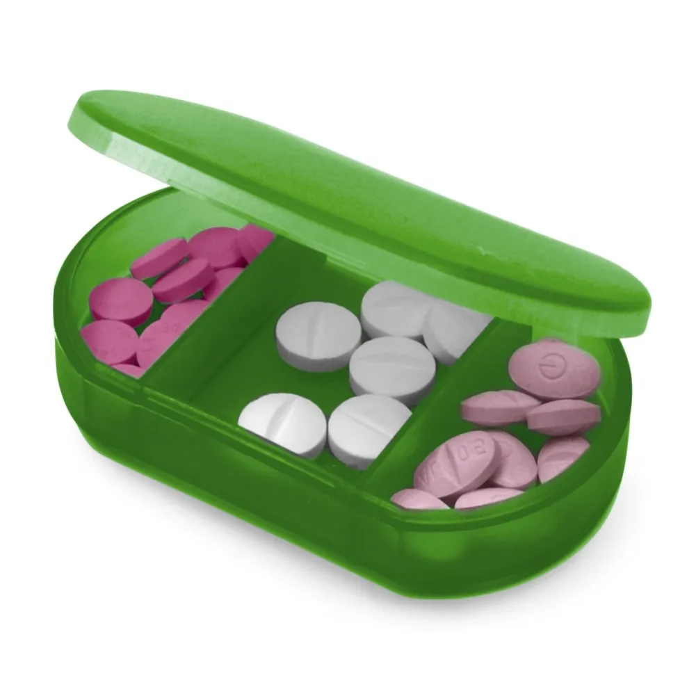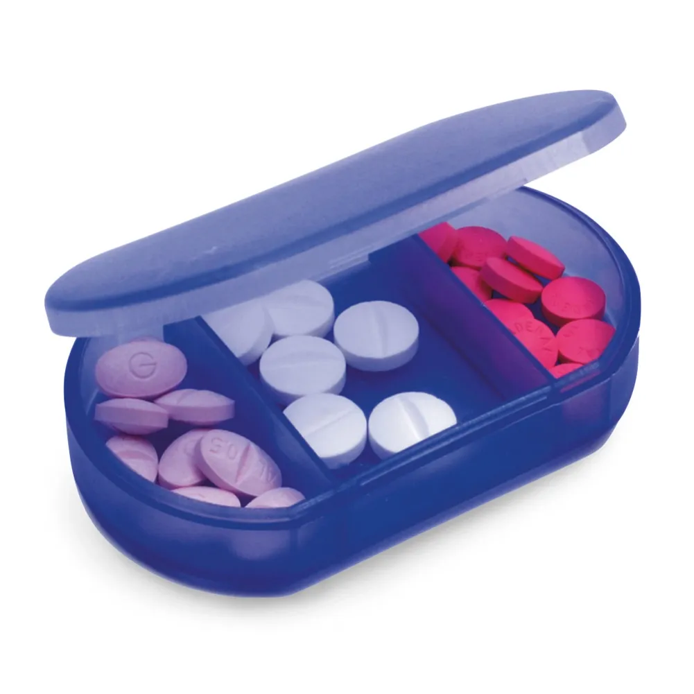 Caixa de comprimidos com 3 divisórias. 60 x 35 x 13 mm