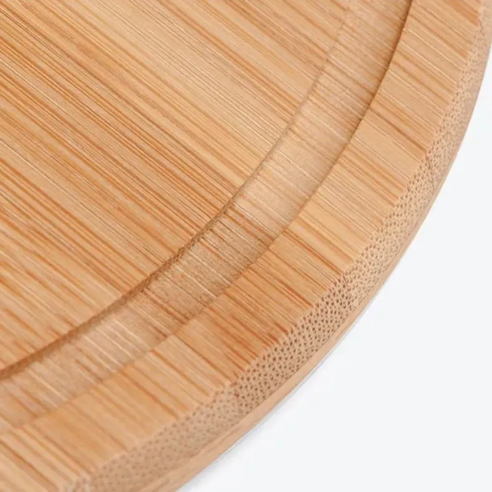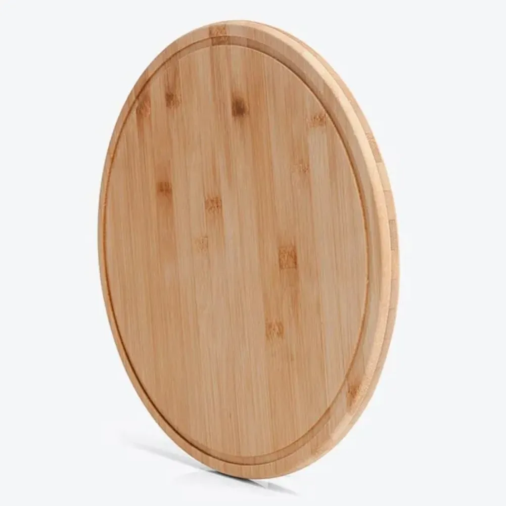 Tábua para Pizza em Bambu; Conta com sulco ao redor da tábua. Confeccionada com tripla camada invertida, para dar maior durabilidade e não deformar com o passar do tempo. Tipo de gravação: Uma gravação a Laser. Dimensões do produto: 30x1,2cm Dimensões da embalagem: 300x300x12 mm (AxLxP) Peso da embalagem: 640 g Embalagem do produto: Plástica