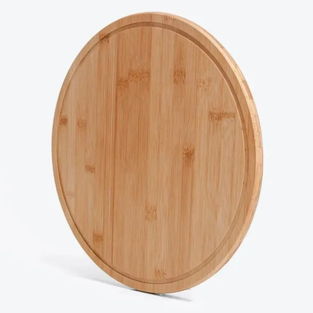 Tábua para Pizza em Bambu; Conta com sulco ao redor da tábua. Confeccionada com tripla camada invertida, para dar maior durabilidade e não deformar com o passar do tempo. Tipo de gravação: Uma gravação a Laser. Dimensões do produto: 35x1,2cm Dimensões da embalagem: 350x350x12 mm (AxLxP) Peso da embalagem: 810 g Embalagem do produto: Plástica