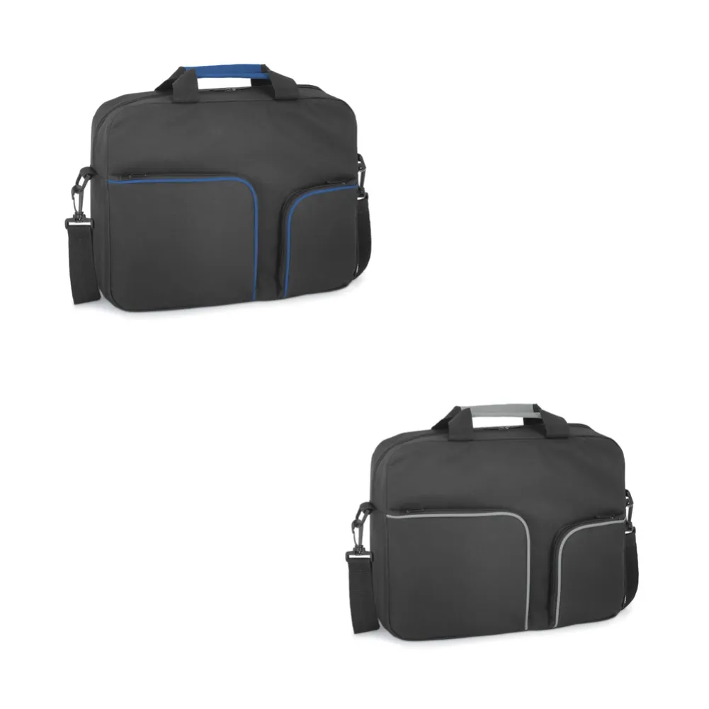 Pasta multifunções em 600D. Contém 2 bolsos frontais com zíper e alça de ombro ajustável com reforço. 380 x 300 x 80 mm