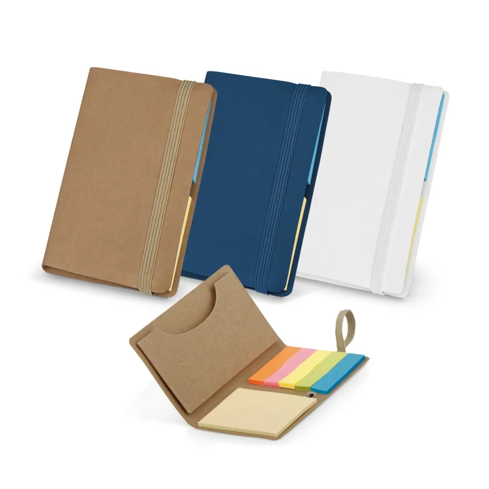 Porta cartões em kraft com elástico, acompanha 6 blocos adesivados com 22 folhas cada. 104 x 65 x 5 mm