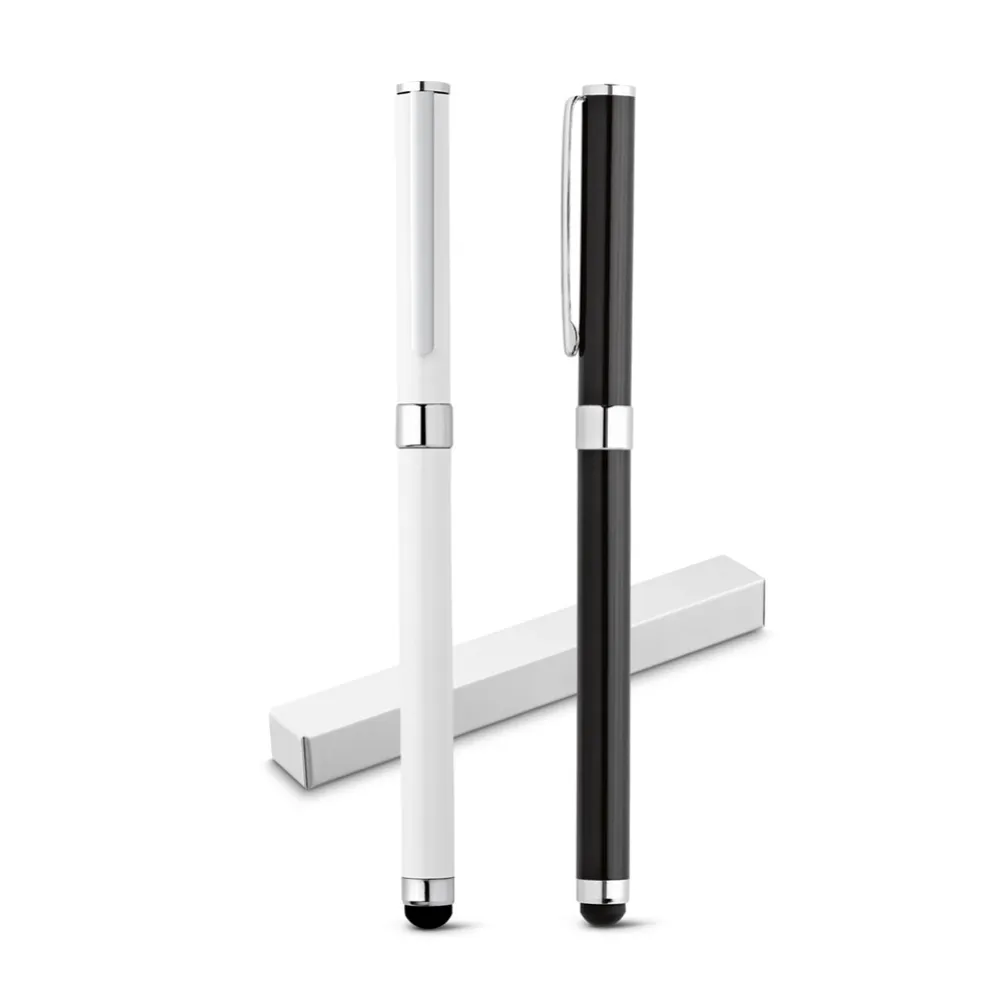 Roller em metal com corpo brilhante e detalhes em cromado. O detalhe da ponteira touch torna este brinde sofisticado e adaptável às novas tecnologias. Escrita preta. Fornecido com caixa presente desmontado. ø9 x 141 mm | Estojo: 150 x 15 x 19 mm