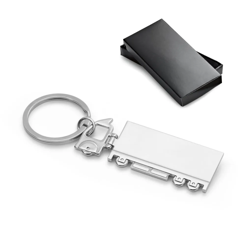 Chaveiro em metal em formato de caminhão. Fornecido em caixa presente. 26 x 71 x 3 mm