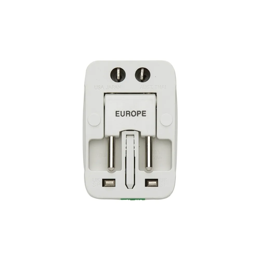 Adaptador universal branco em plástico resistente.Possui plug EUROPE: para uso basta puxar a tomada cental, para guardar empurrar para dentro. Plug UK/SP: empurre o botão verde de lock para unlock e a tomada irá pra fora, para guardar basta empurrar a tomada de volta para dentro e empurre o botão para lock(neste processo é necessário segurar a tomada enquanto trava). Plug USA/JAPAN/AUST/THAI: empurre o botão verde de lock para unlock e a tomada irá pra fora, para guardar basta empurrar a tomada de volta para dentro e empurre o botão para lock(neste processo é necessário segurar a tomada enquanto trava). Parte central basta conectar algum dispositivo e utilizar as outras tomadas para conectar à energia. Quando o adaptador estiver com a luz vermelha acesa significa que está funcionando.