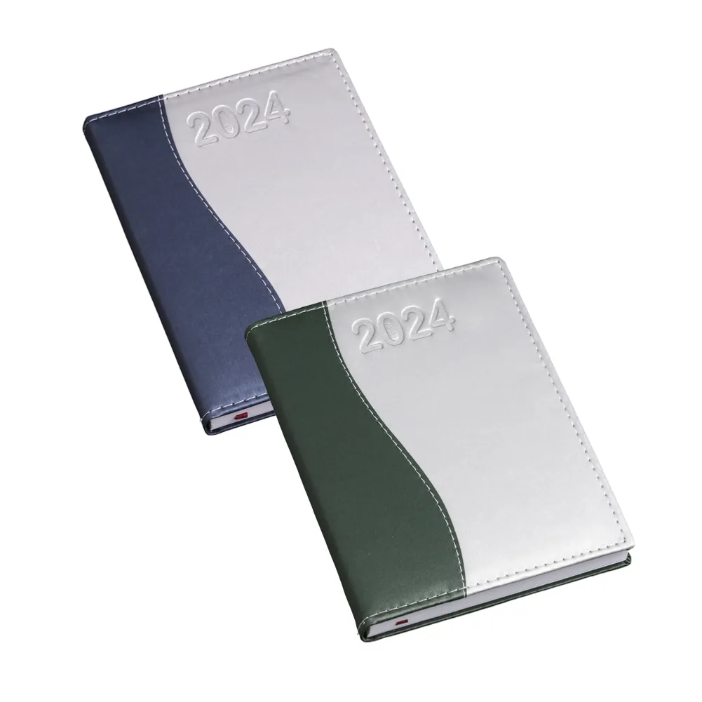 Agenda diária 2024 de couro sintético. Contém fita de cetim marca página, dados pessoais, calendário de 2023 à 2025, mapa do Brasil, mapa global, índice telefônico e planejamento. OBS.: PEDIDOS APENAS MÚLTIPLOS DE 10 PEÇAS!