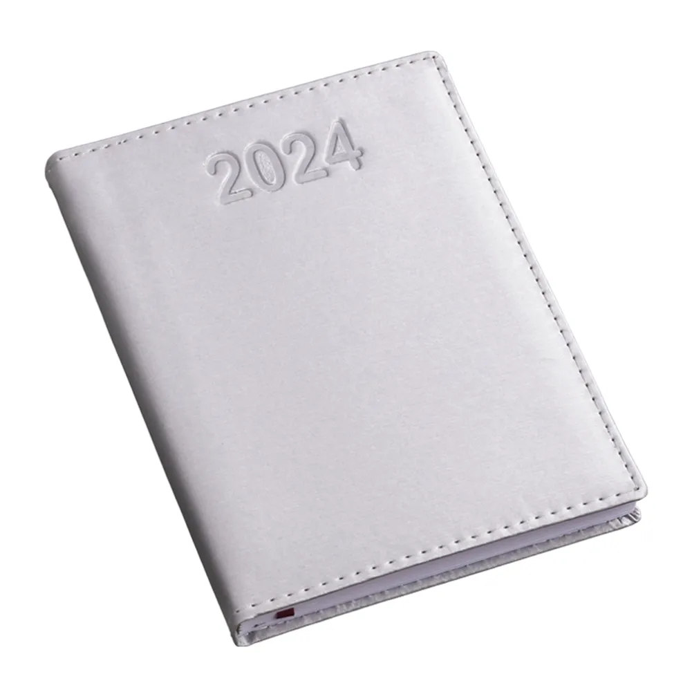 Agenda diária 2024 de couro sintético. Contém fita de cetim marca página, dados pessoais, calendário de 2023 à 2025, mapa do Brasil, mapa-múndi, índice telefônico e planejamento. OBS.: PEDIDOS APENAS MÚLTIPLOS DE 10 PEÇAS!
