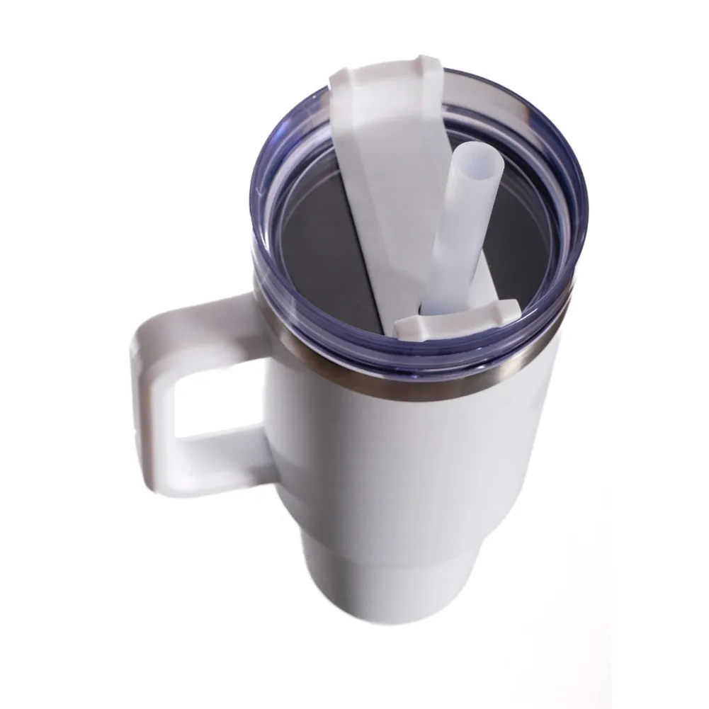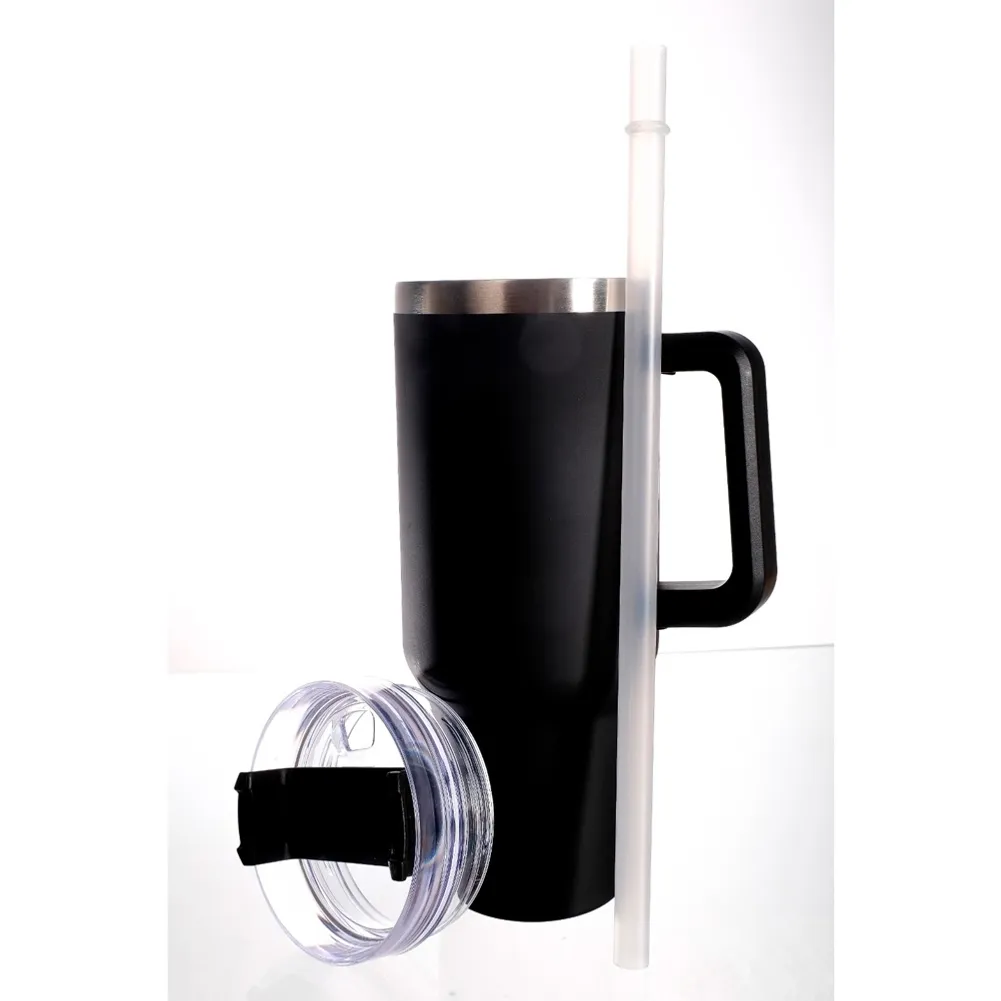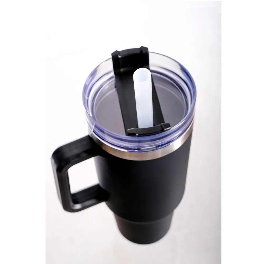 Copo térmico modelo Quencher em aço inox, parede dupla, isolante a vácuo, 1200ml, tampa e canudo.