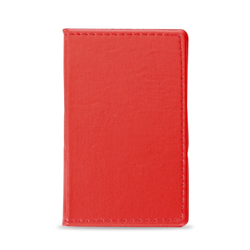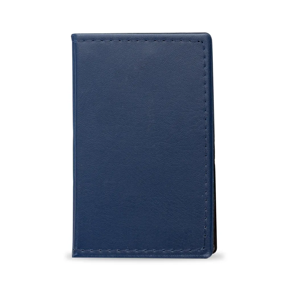 Bloco de anotações em couro sintético com autoadesivos, frente e verso liso. Possui cinco blocos coloridos autoadesivos com aproximadamente 25 folhas e bloco amarelo com aproximadamente 30 folhas.
