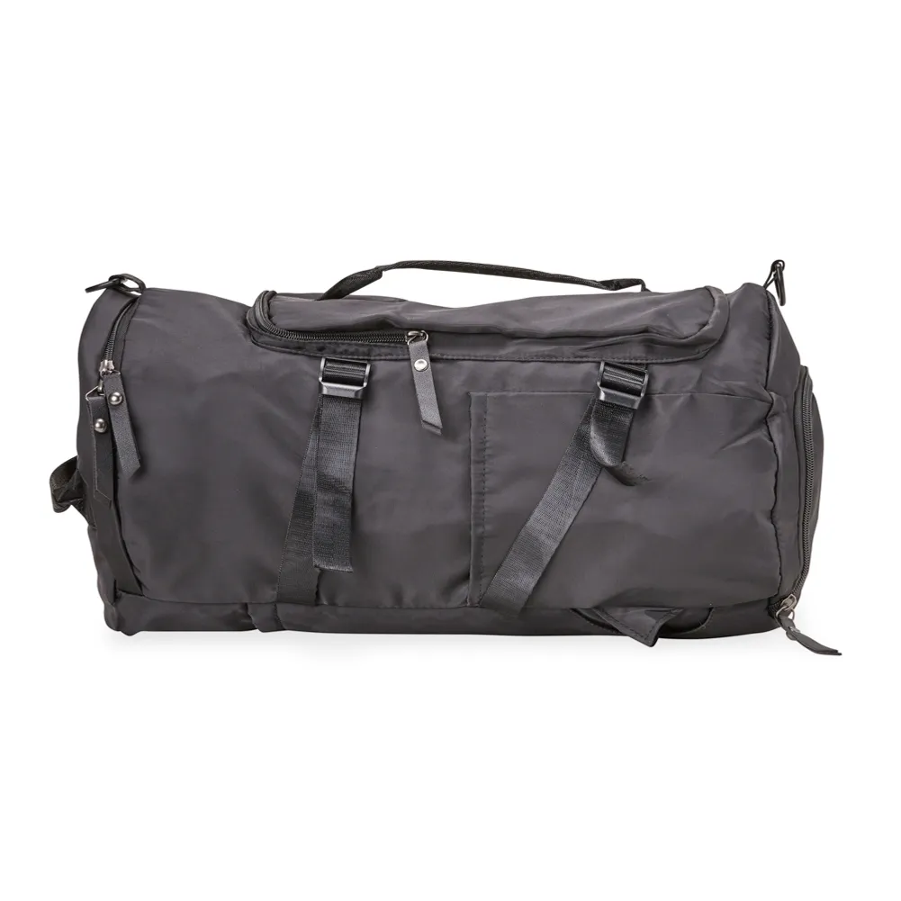 Bolsa esportiva de 25 litros em poliéster de impacto impermeável com três compartimentos, sendo um deles exclusivos para tênis. Compartimento principal com dois bolsos, sendo um deles com zíper exclusivo para itens molhados. Com bolsos laterais e duas alças de mãos, a bolsa contém alças de compensação, alça transversal removível e alças para as costas ocultas no compartimento inferior, podendo ser transportada como mochila.