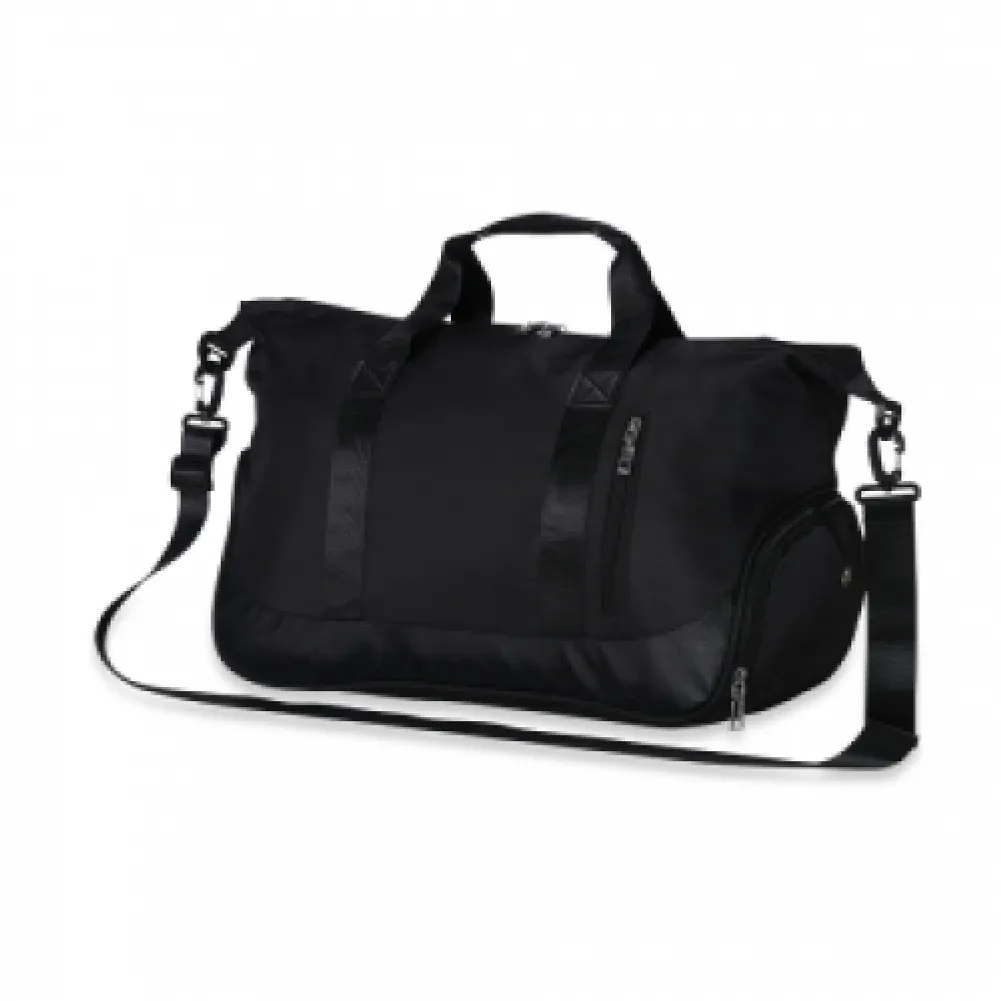 Bolsa esportiva de 28 litros em poliéster à prova dágua com quatro compartimentos, sendo dois deles exclusivos para tênis e itens molhados. Contém bolso para encaixe em malas de viagem, bolso interno e acompanha alça transversal.