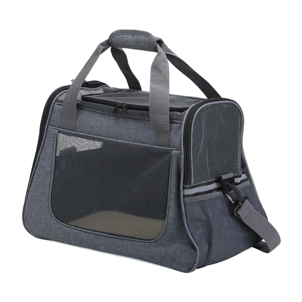 Bolsa para transporte de pets, confeccionada em tecido Oxford com bolso lateral. Seu tapete dupla face, com uma camada aveludada, foi projetado para proporcionar o máximo conforto ao pet. Equipada com telas respiráveis em nylon, esta bolsa apresenta uma abertura superior e duas aberturas laterais com faixas refletivas, sendo uma delas com abertura completa, permitindo uma experiência de transporte arejada, com entrada e saída prática para o pet. As alças de mão, estrategicamente equipadas com suporte para junção, garantem conforto durante o transporte manual, enquanto a alça transversal proporciona um transporte ergonômico com distribuição mais eficiente do peso.