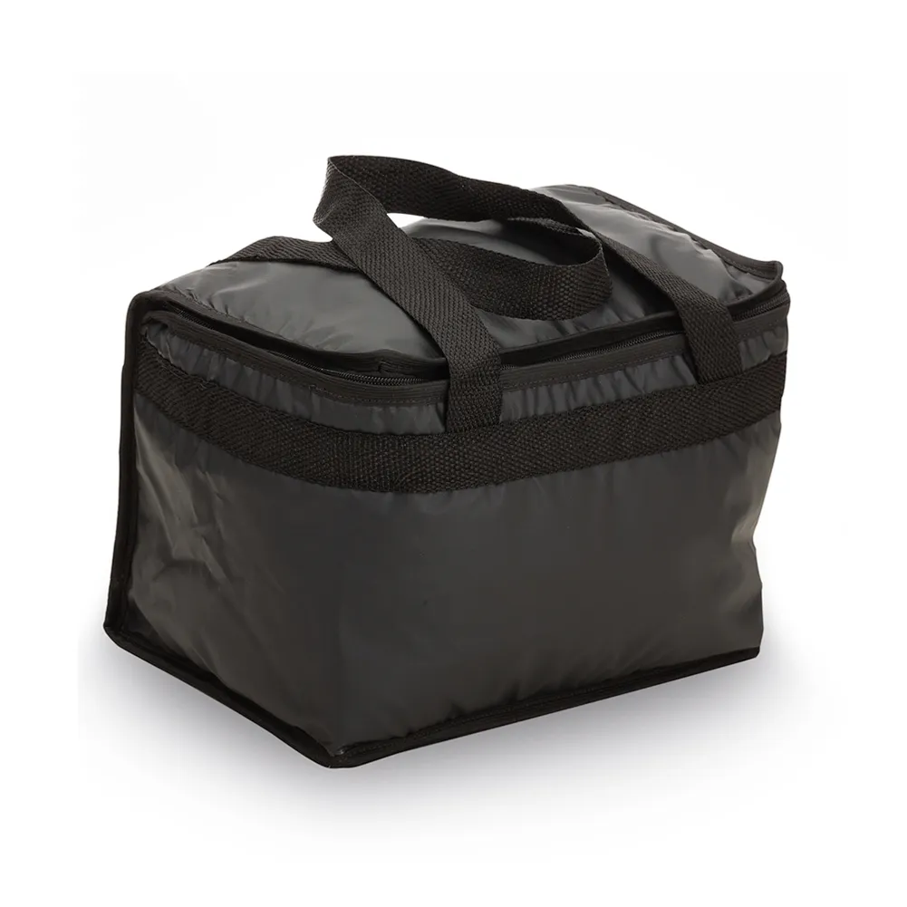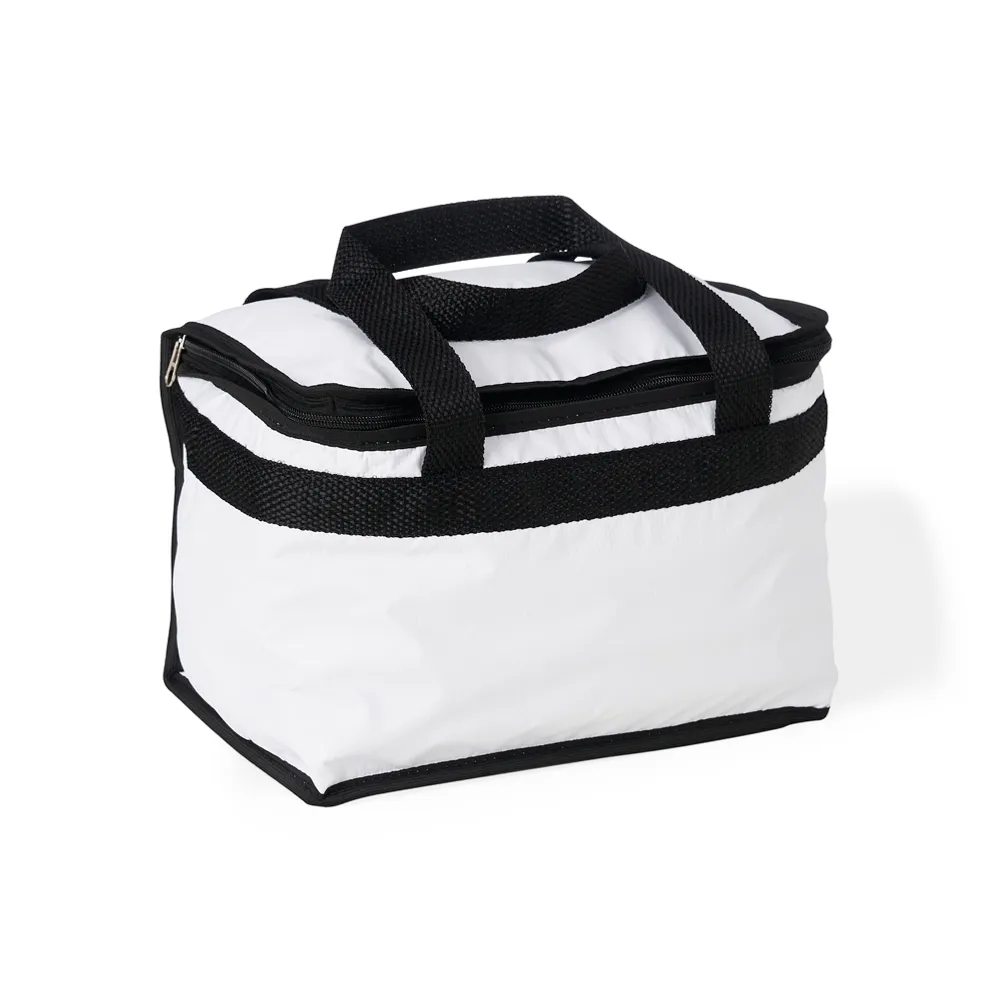Bolsa térmica 13 litros confeccionada em bagum sintético, contém revestimento interno em polietileno atóxico soldado (não vaza) e alça para mãos em polipropileno.