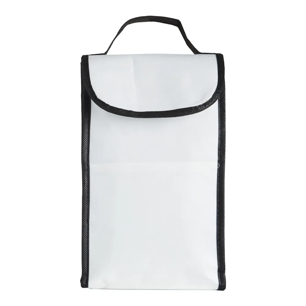 Bolsa térmica de rPET com capacidade de 4 litros com bolso frontal. Feita a partir de materiais recicláveis.