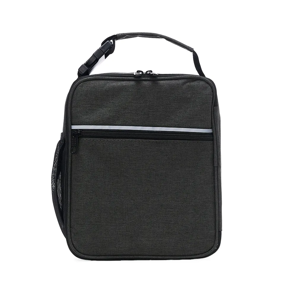 Bolsa térmica de nylon com dois compartimentos, capacidade de 6 litros. Com bolso telado e tela média de proteção interna, a bolsa possui uma faixa frontal refletiva, bolso lateral telado e alça de mão com fivela de encaixe.