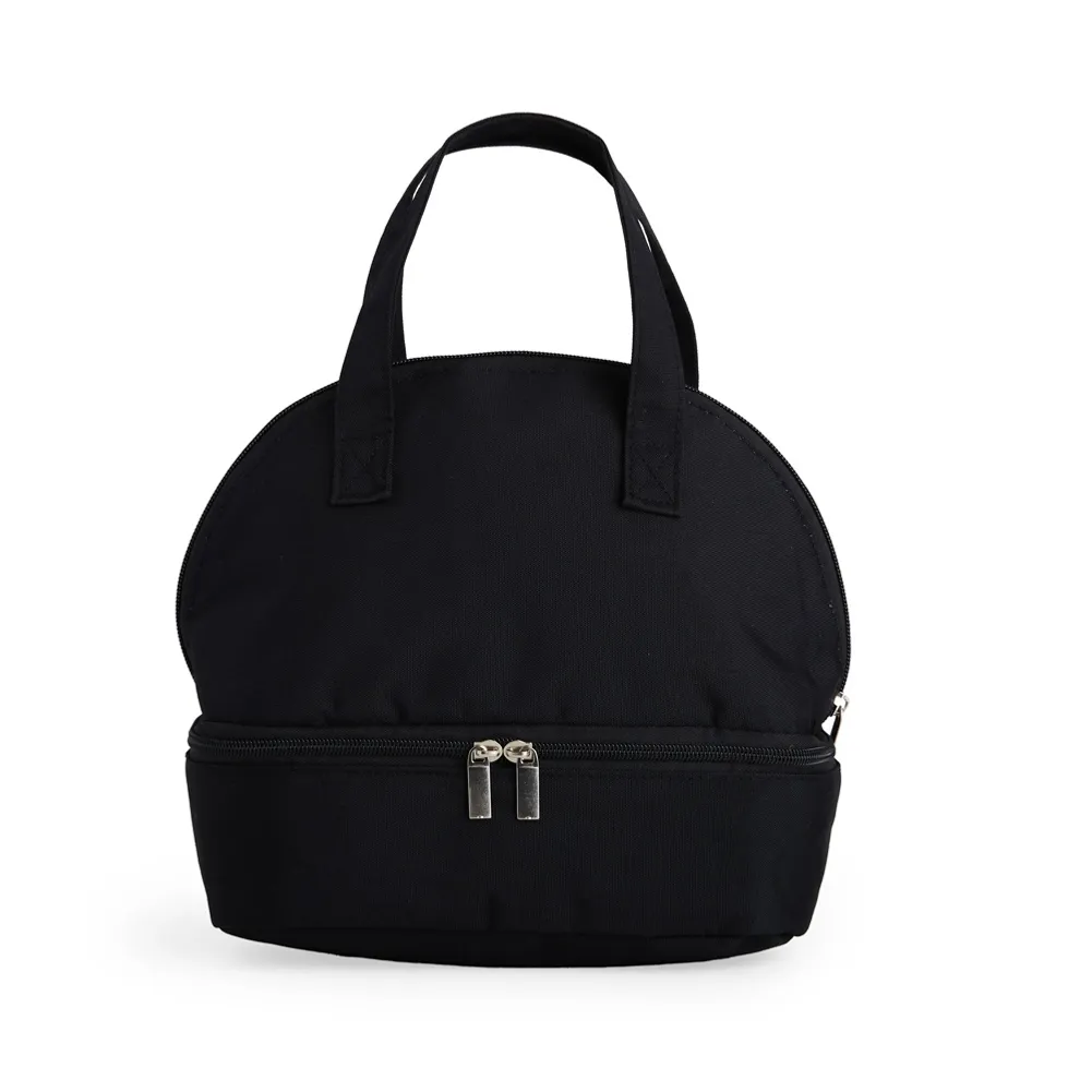 Bolsa térmica dupla em oxford com dois compartimentos térmicos isolados, capacidade de 6 litros. Contém alças de mãos.