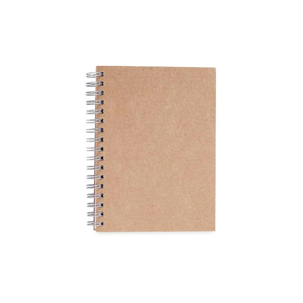 Caderneta ecológica com wire-o. Contém aproximadamente 80 páginas pautadas na cor branca.