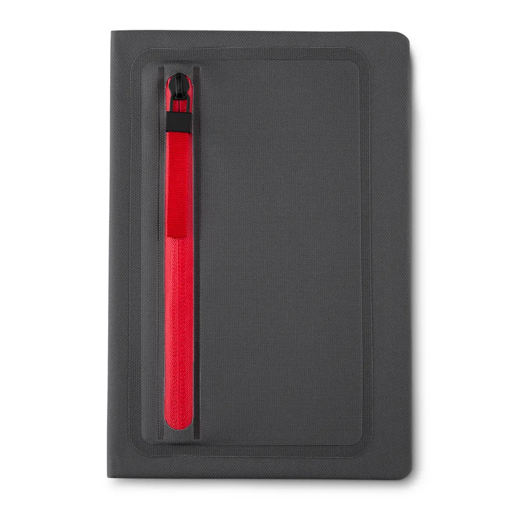 Caderno de anotações com porta objetos na capa, capa dura em material sintético, miolo 80 folhas pautadas na cor bege. Dimensão do Produto: 21,5x15,5x1,5cm Peso do Produto: 0,295kg Embalagem: Saco Plástico Quant. por Caixa: 40pçs Dimensão da Caixa: 38x31x23cm Peso da Caixa: 12,8kg