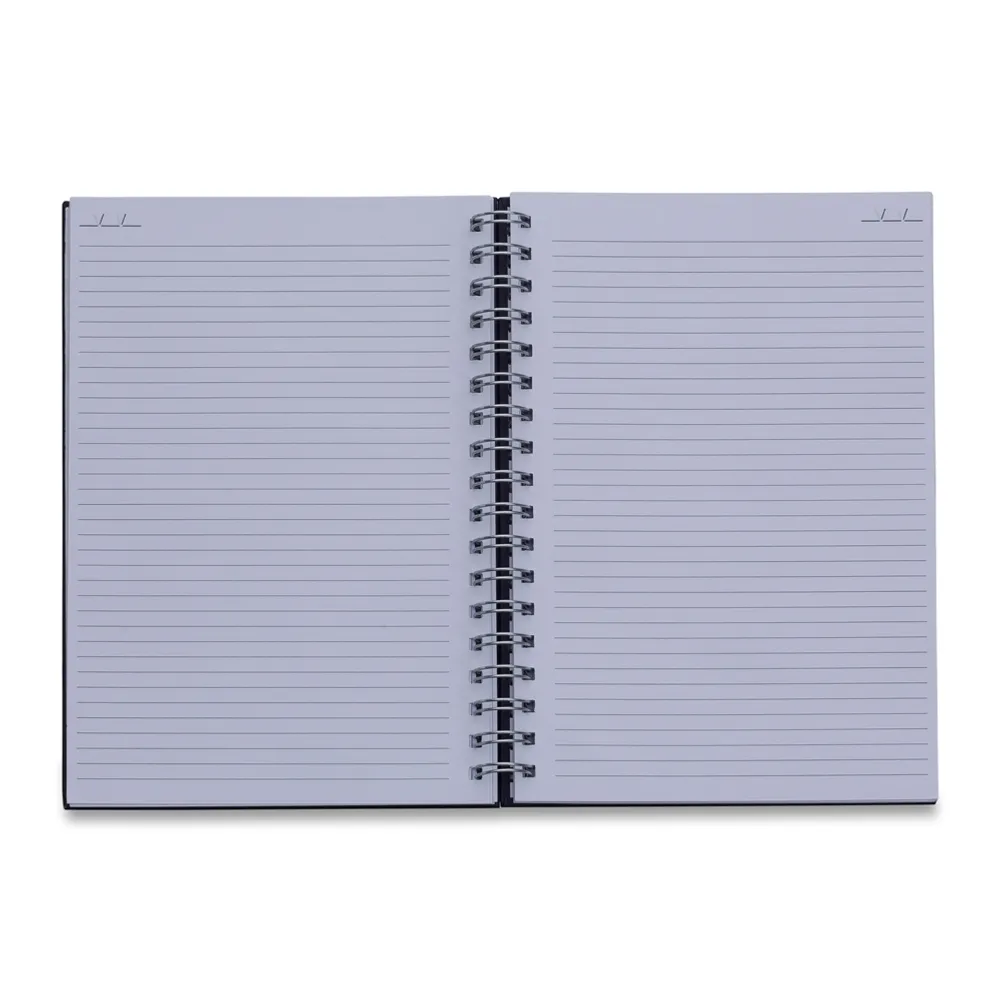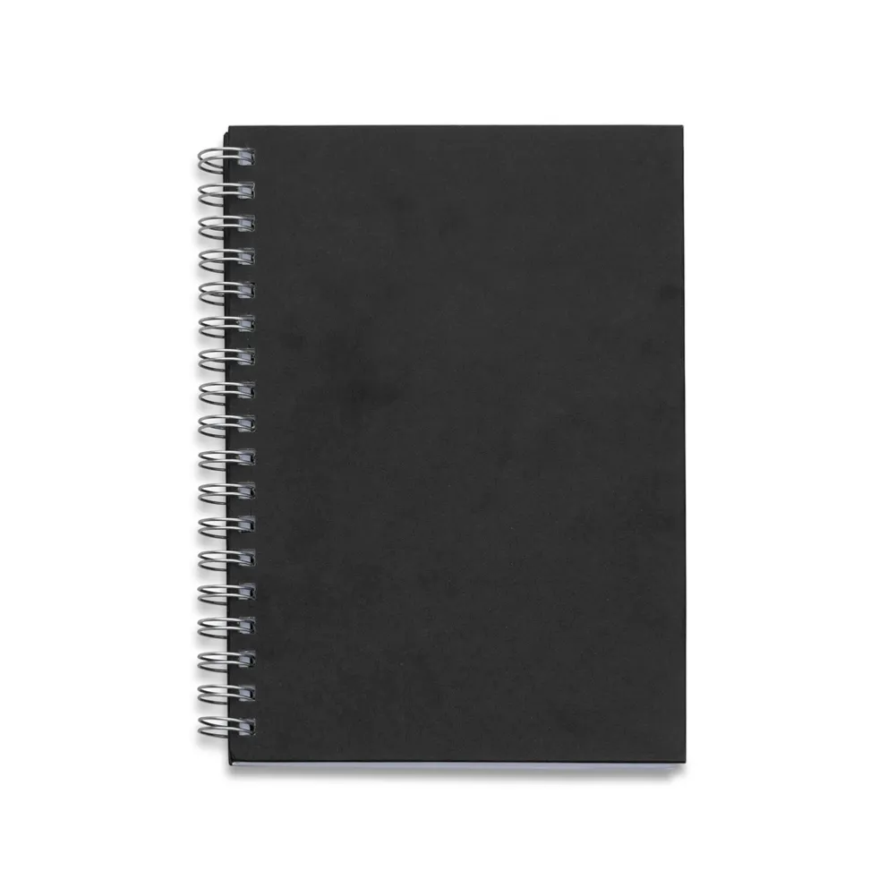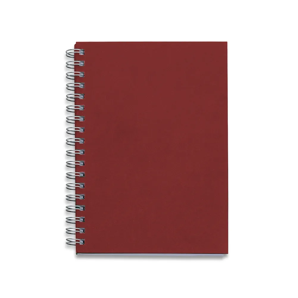 Caderno com capa kraft colorida e espiral prata metálico. Possui aproximadamente 98 folhas brancas pautadas e páginas para: dados pessoais, calendário de 2020 à 2024 e planejamento.