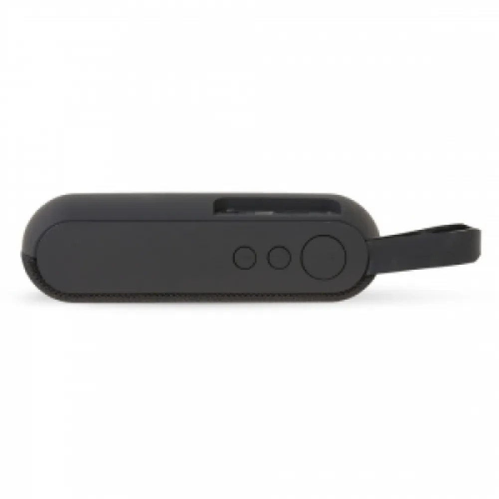 Caixa de Som Multimídia. Produzida em material emborrachado com alça lateral, tela de proteção dos falantes em tecido, parte inferior com borrachas anti-deslizantes. Possui os botões de Play/Pause e Modo; Aumentar e diminuir volume/avançar e retroceder faixas; Entrada auxiliar P2; Entrada TF (cartão MicroSD); Entrada USB; Microfone; Entrada DC 5V e botão para ligar e desligar. Acompanha cabo USB.