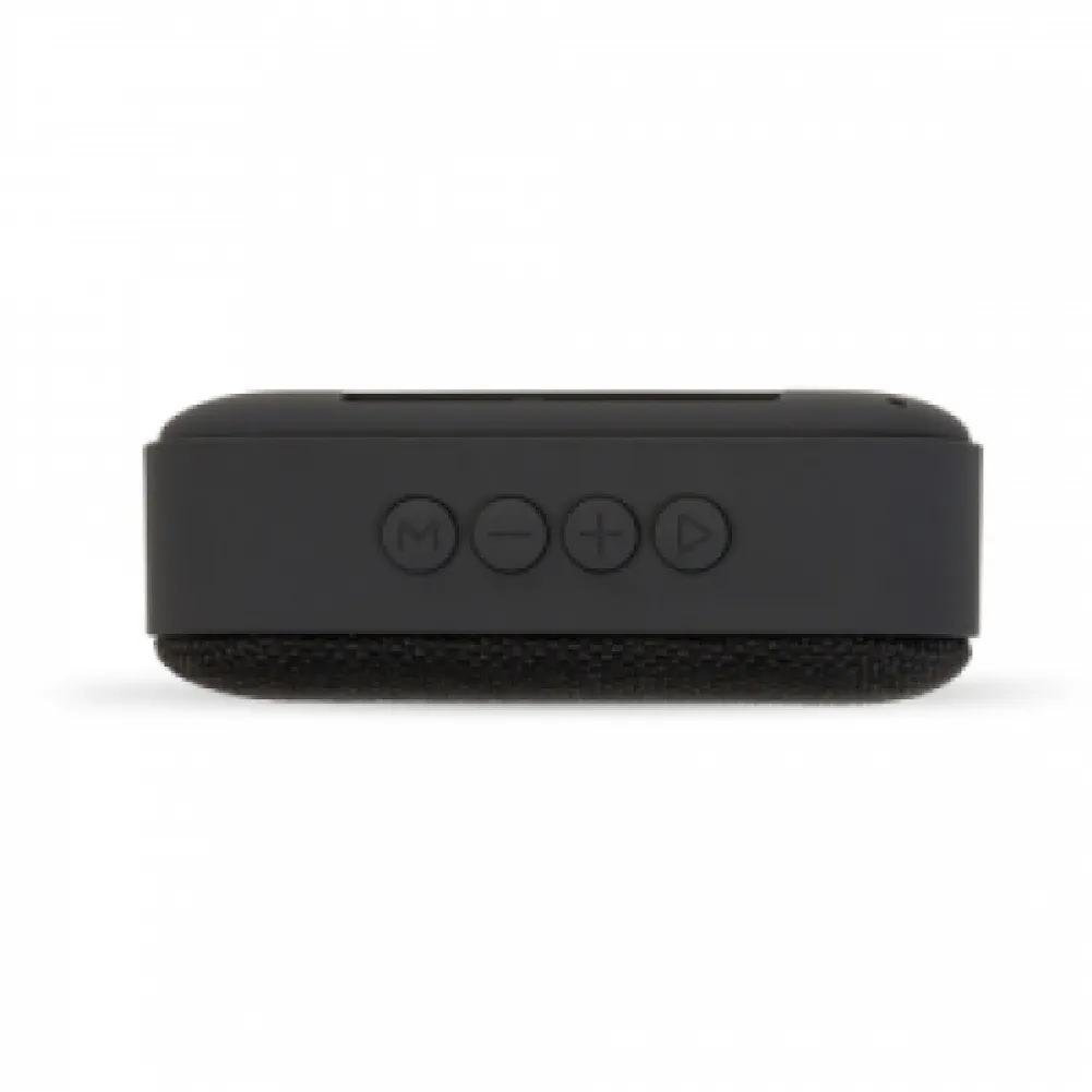 Caixa de Som Multimídia. Produzida em material emborrachado, tela de proteção do auto-falante em tecido, parte inferior com borrachas anti-deslizantes. Possui os botões de Play/Pause; Aumentar e diminuir volume/avançar e retroceder faixas; Modo; Entrada USB; Entrada TF (cartão MicroSD); Botão On/Off e Entrada DC 5V. Acompanha cabo USB.