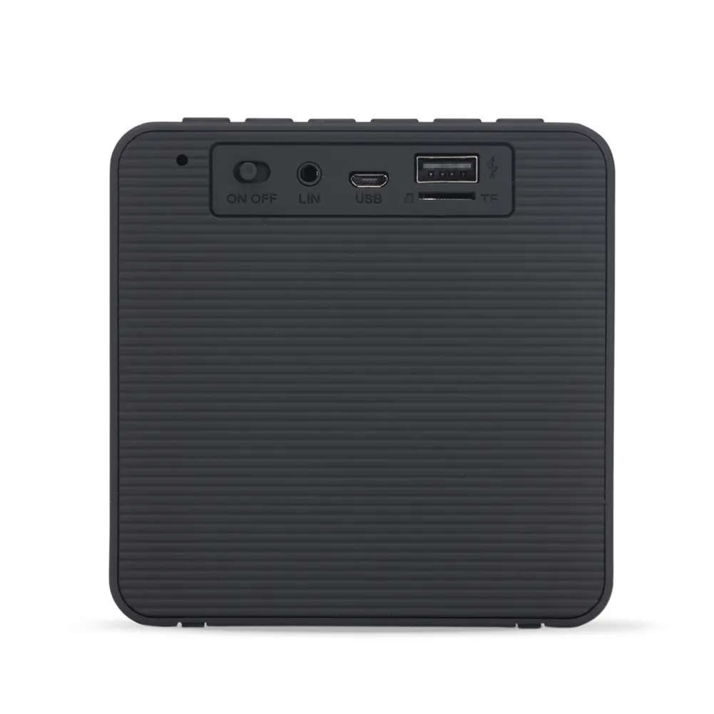 Caixa de Som Multimídia com relógio digital. Material emborrachado com display superior frontal, tela de proteção dos falantes em tecido, parte inferior com borrachas anti-deslizantes. Possui botões de Relógio/Alarme; Telefone/Atender chamadas; Mode; - retroceder/diminuir; + avançar/aumentar; Play/Pause/Troca; Microfone; Botão on/off; Entrada auxiliar P2; Entrada DC 5V; Entrada USB e Entrada TF (cartão MicroSD). Acompanha cabo USB e manual de instruções em chinês/inglês.