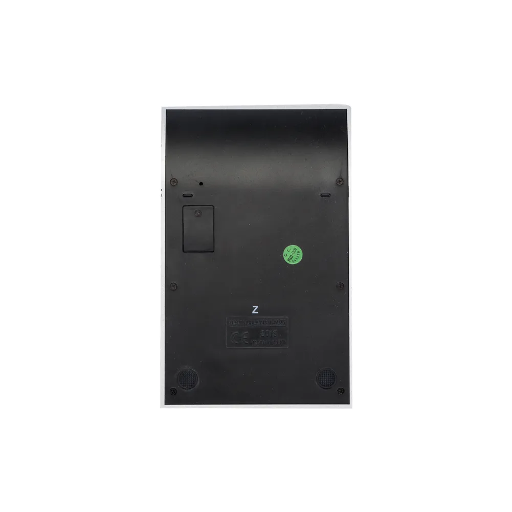Calculadora plástica prata de 8 dígitos com detalhes preto. Modelo solar, parte inferior preta e com borrachas anti-deslizantes. Acompanha uma bateria L1131.