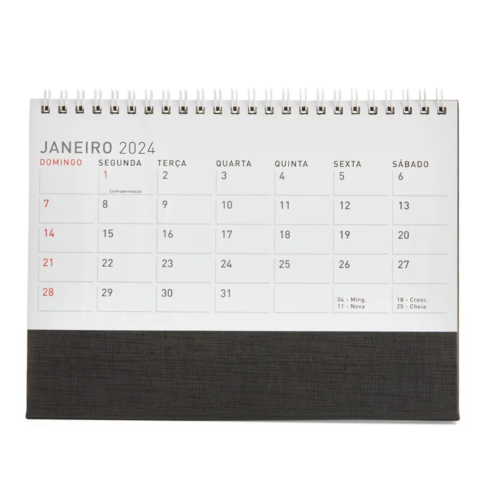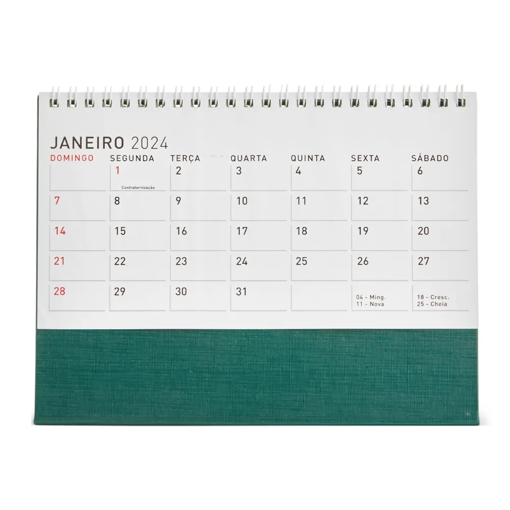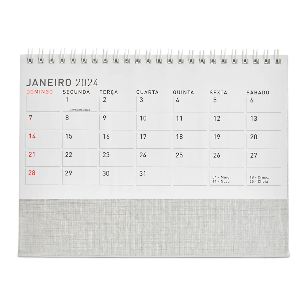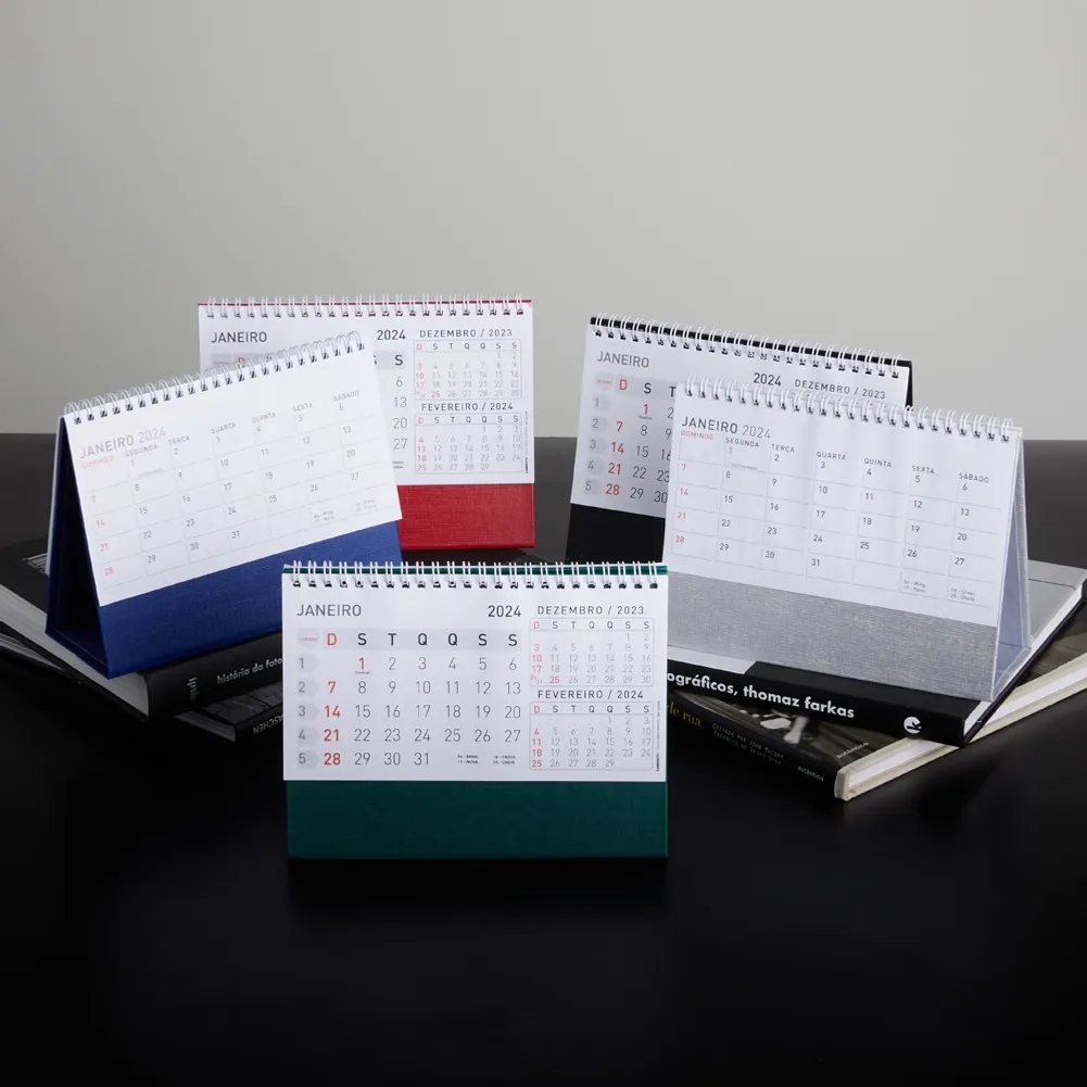 Calendário de mesa 2024 em papel couche 115g, base em percalux.