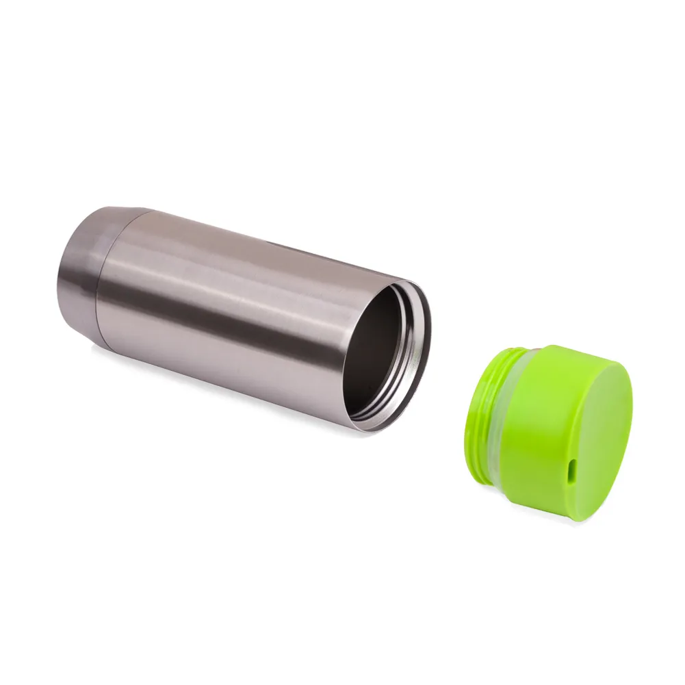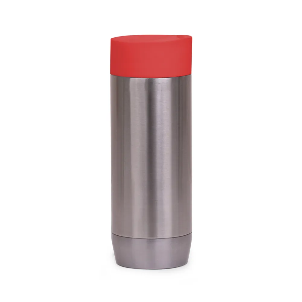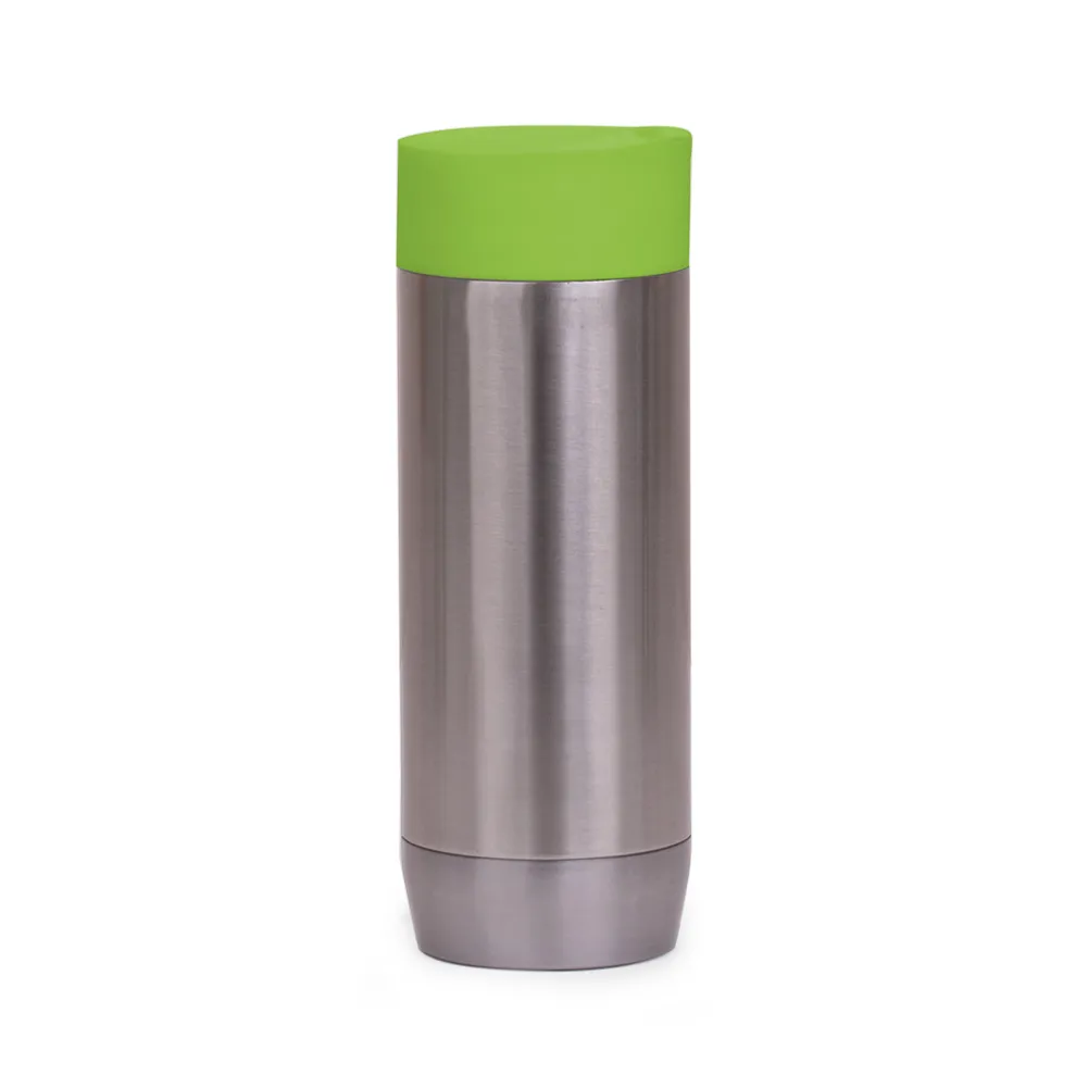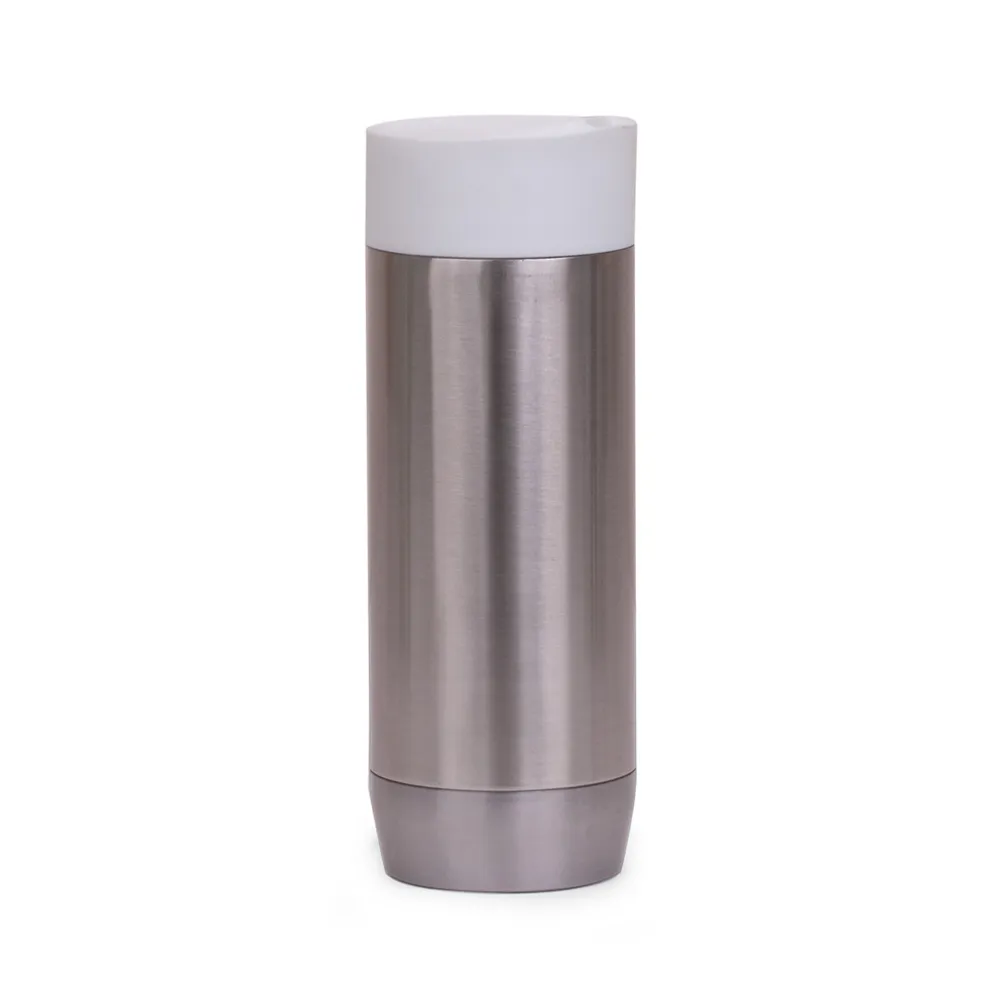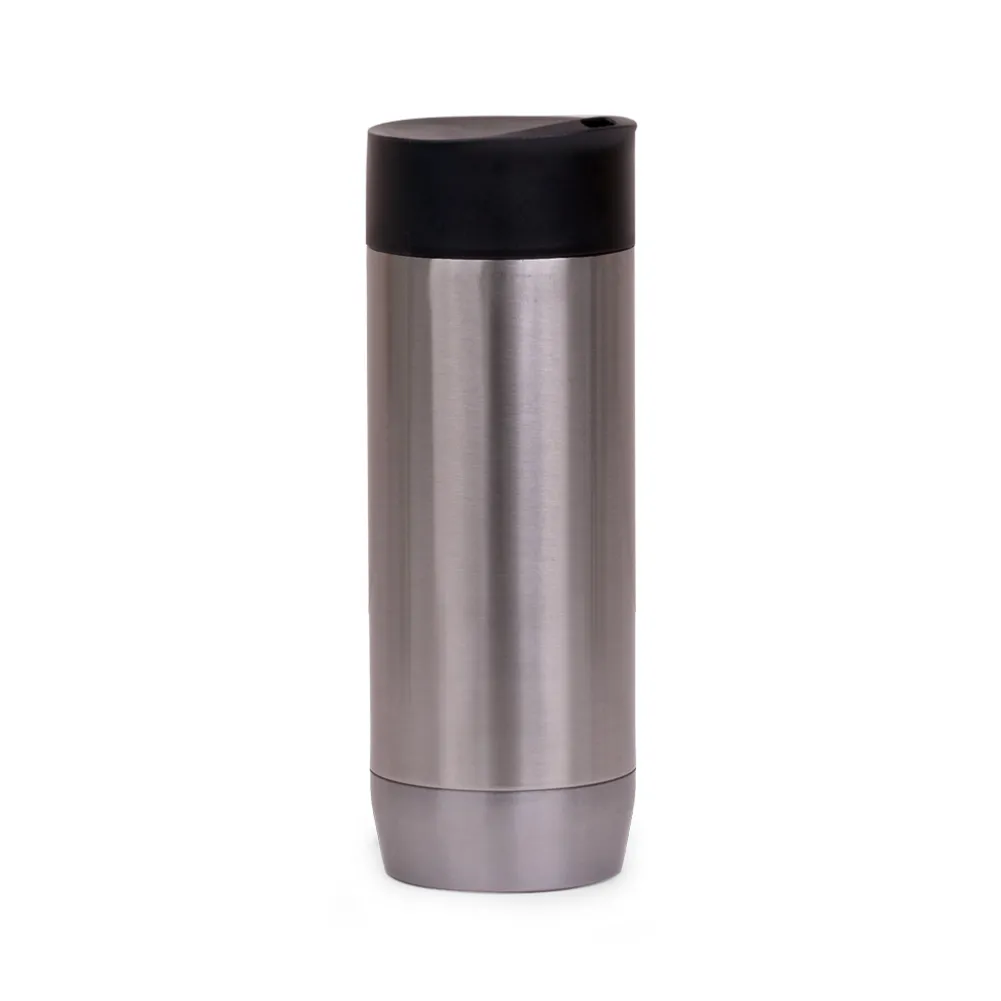 Caneca em aço inox parede dupla de 450ml, conserva temperatura quente ou fria e tampa com vedação.
