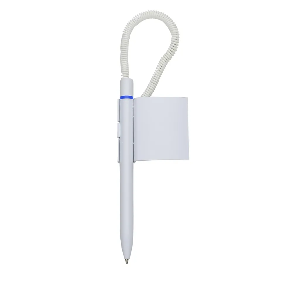 Caneta balcão plástica com suporte e adesivo auto colante. Carga esferográfica azul. QUANTIDADE MÍNIMA DE 100 PEÇAS!