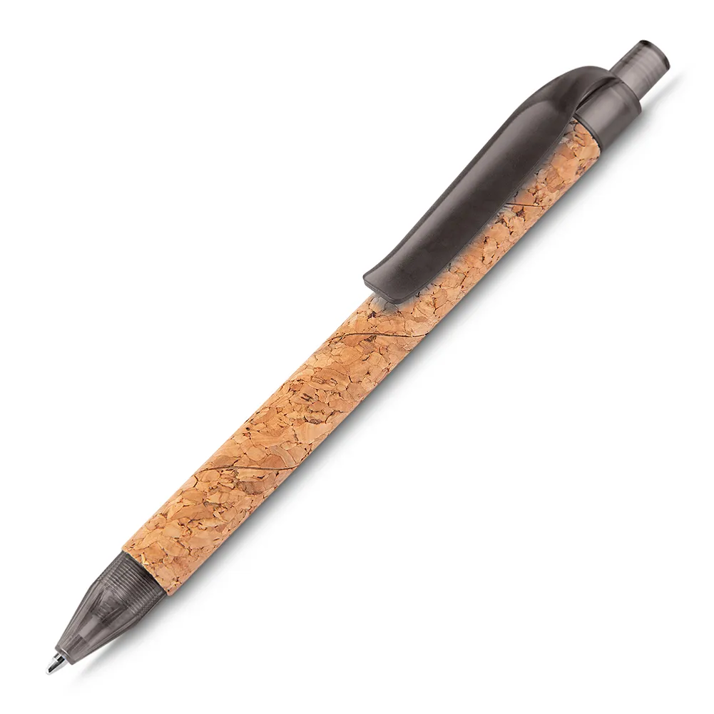 Caneta corpo em Cortiça, com detalhes em plástico. Design único e diferenciado.