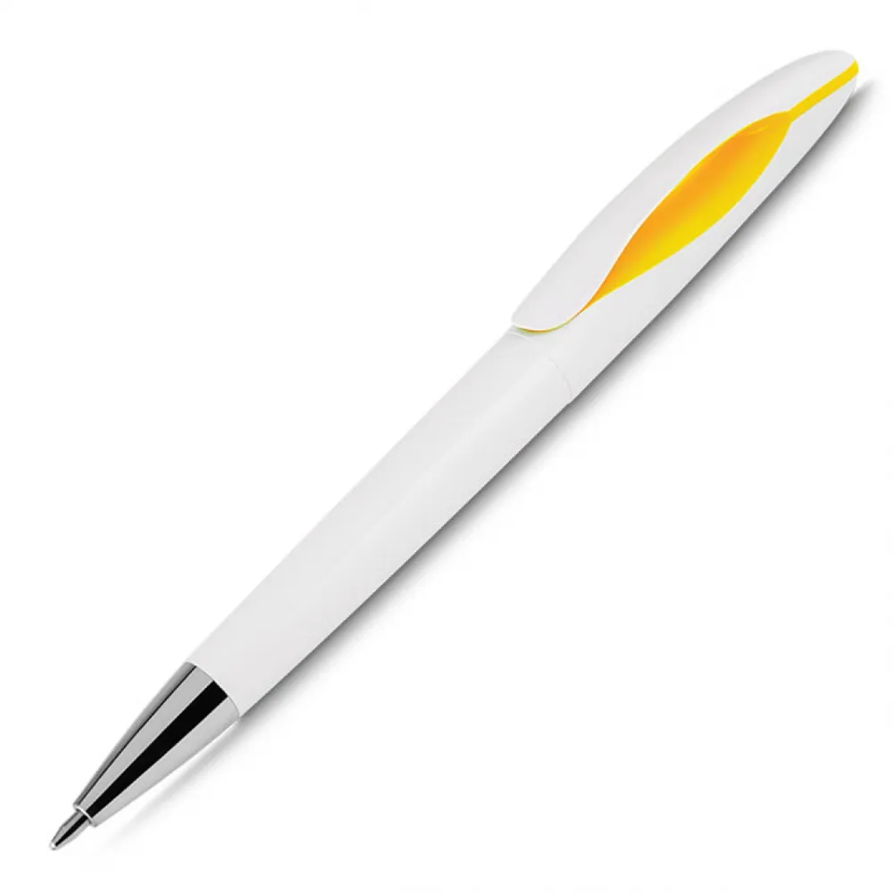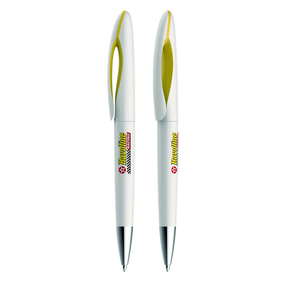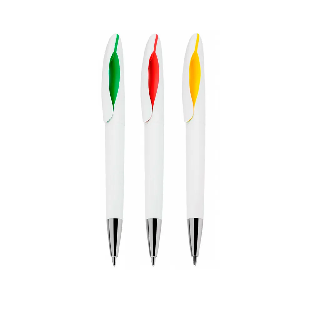 Caneta plástica esferográfica twist escrita em azul