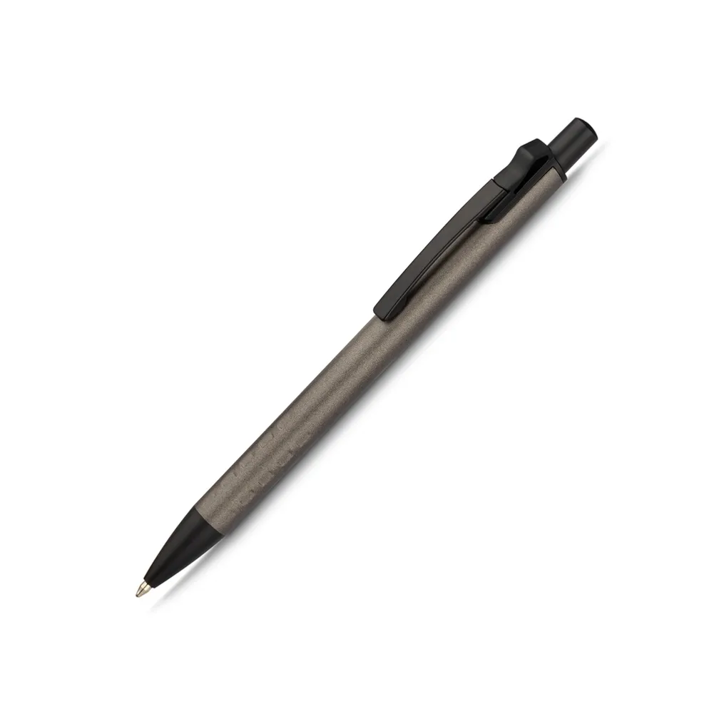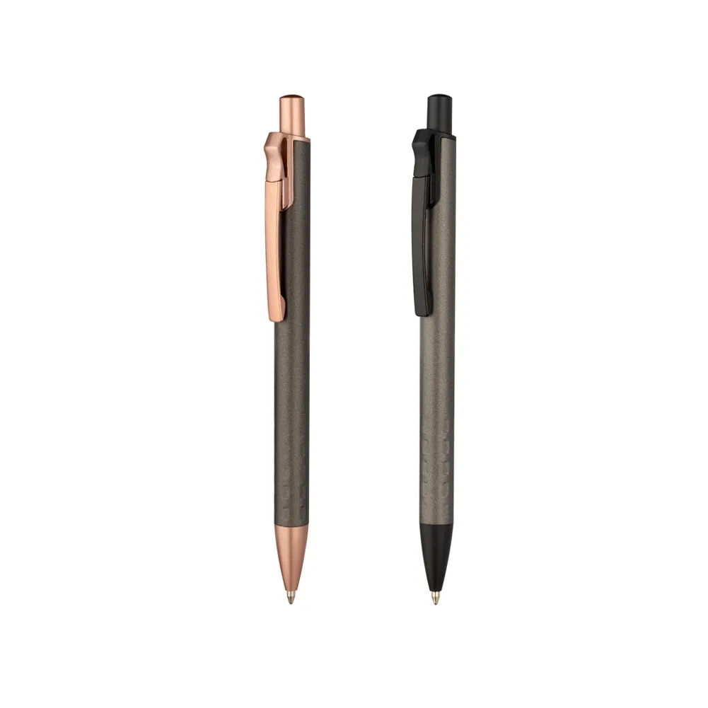 Caneta metálica com acionamento por clique, carga esferográfica azul 1,0mm.