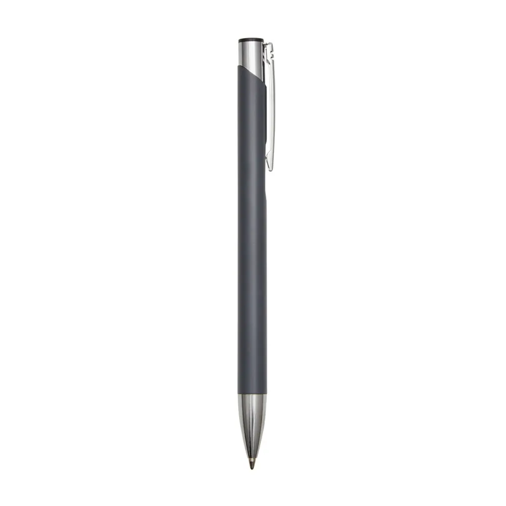 Caneta metálica com carga esferográfica azul 1.0mm e acionamento por clique.