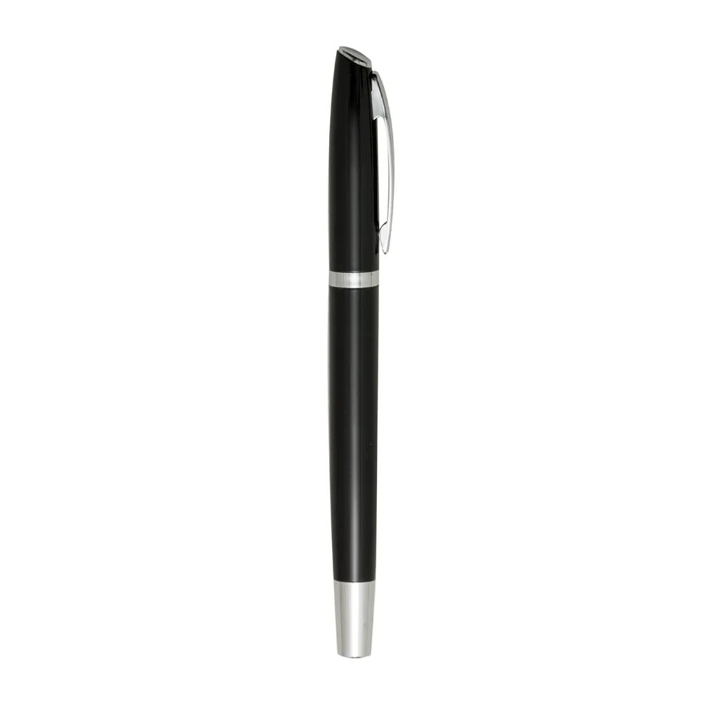 Caneta metal com tampa, carga rollerball azul.